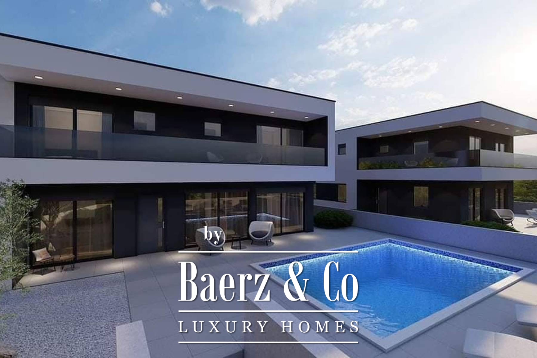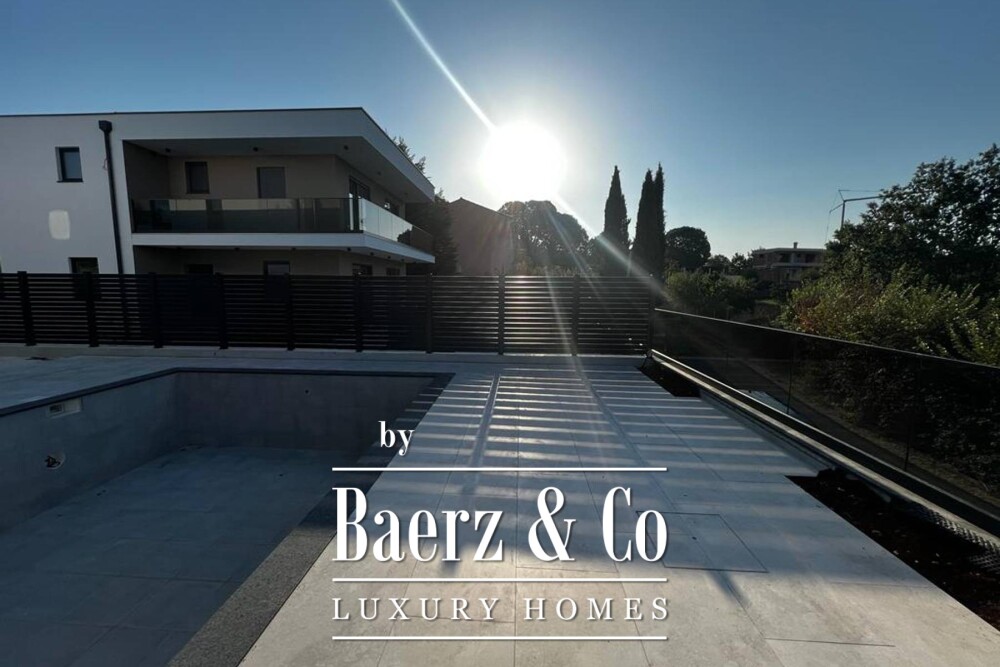 Вилла Svetvinčenat — это современная отдельно стоящая вилла на продажу в Хорватии, уединённо расположенная на самом краю застройки с панорамными видами на море. Площадь резиденции составляет 200 м² и она распределена на два уровня, сочетая функциональность с сдержанной роскошью. На первом этаже расположен просторный холл, прачечная, гостевой санузел, котельная с кладовой, а также объединённое пространство кухни, столовой и гостиной. Крытые террасы примыкают к фасаду с доступом к бассейну и к задней части, где предусмотрена зона для барбекю на свежем воздухе.