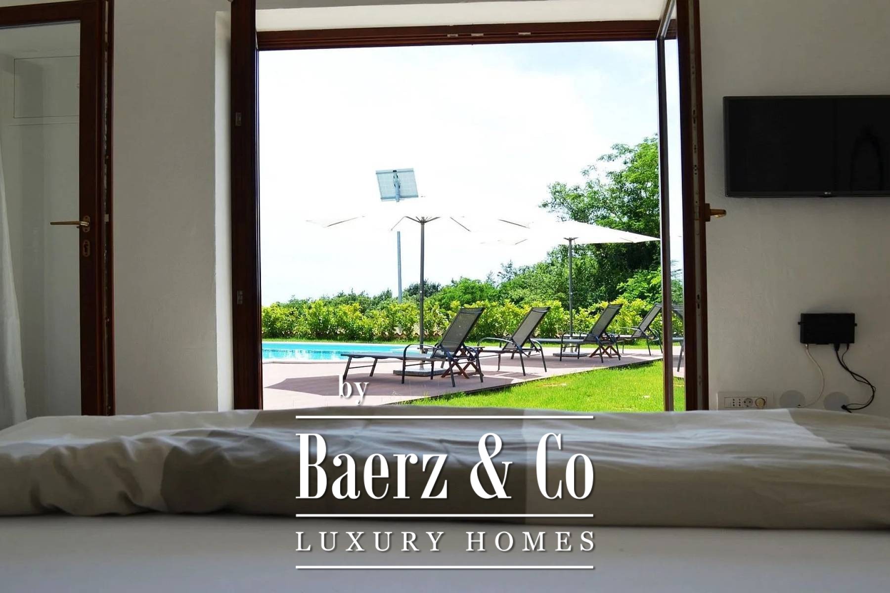 На втором этаже расположены еще две спальни — каждая с ванной комнатой и приватным выходом на крытую террасу, соединённую с бассейном наружной лестницей. Атмосферу формируют итальянская керамика, дубовый паркет, элементы из лиственницы, а также авторская мебель ручной работы. Комфорт и безопасность гарантируются пятью кондиционерами, камином, тёплыми полами вне спален и современной системой сигнализации.