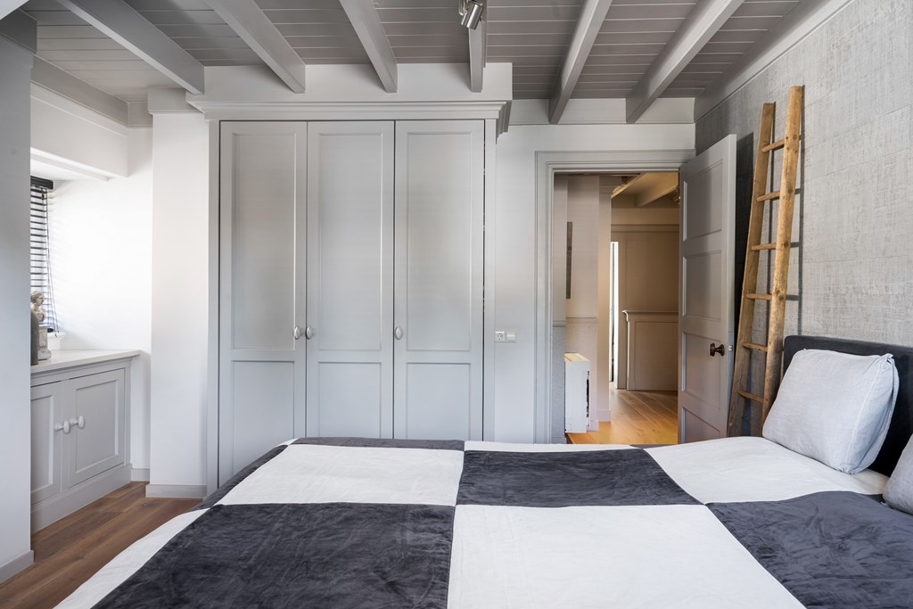Внутри органично сочетаются аутентичные терраццо и современная световая среда. Просторная гостиная с панорамными окнами и изысканным газовым камином плавно переходит в столовую, способную принять гостей. Кухня укомплектована высокотехнологическим оборудованием, включая паровую духовую печь Miele и индукционную варочную панель; смежные подсобное помещение и погреб обеспечивают практичность в быту. Наверху сохраняется ощущение света и простора в пропорциональных спальнях, продуманных с акцентом на хранение; приватную зону венчает спокойная ванная.
