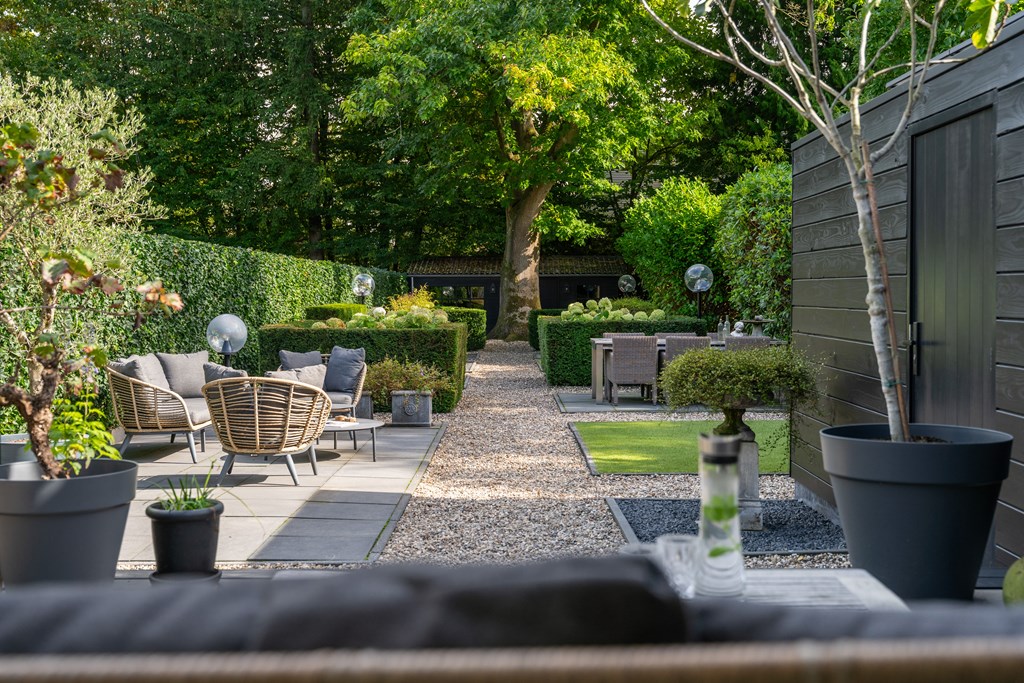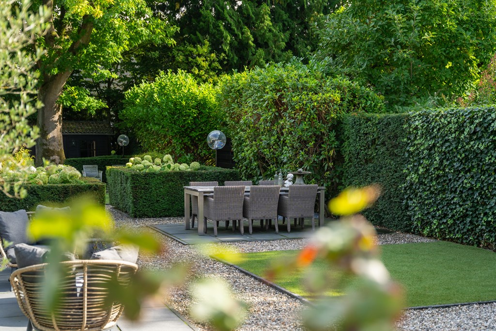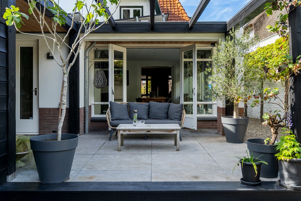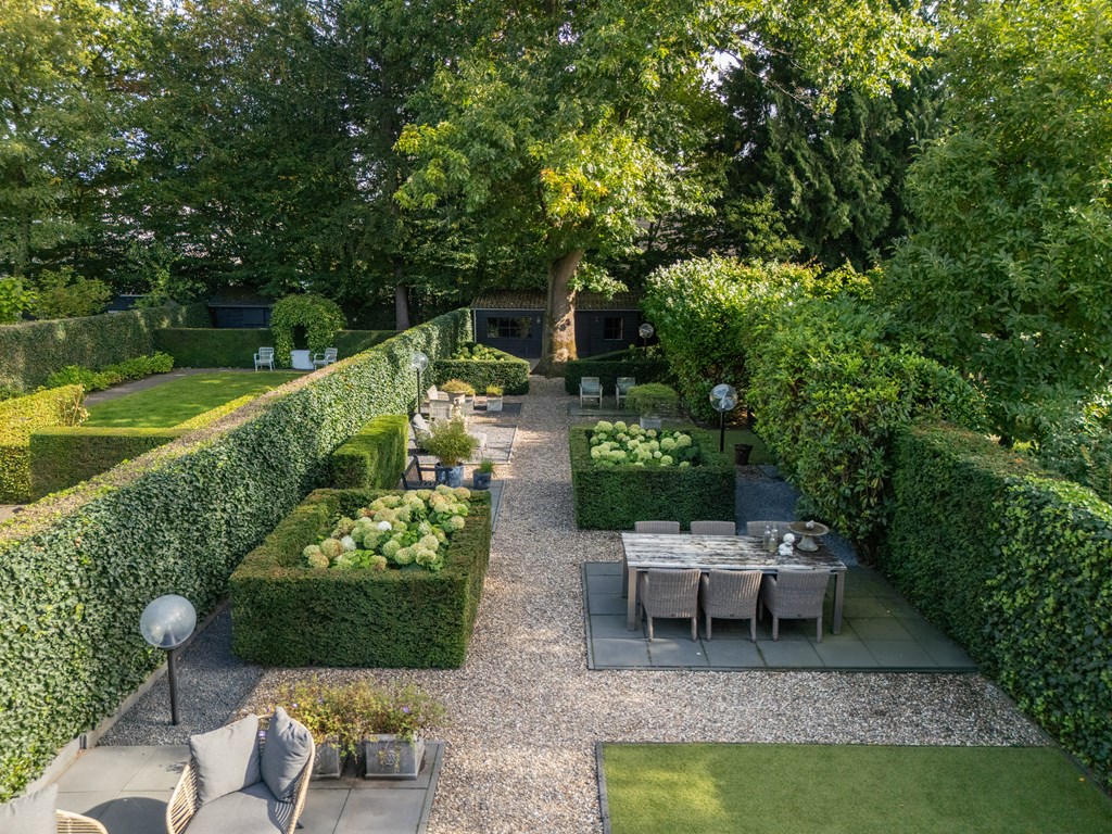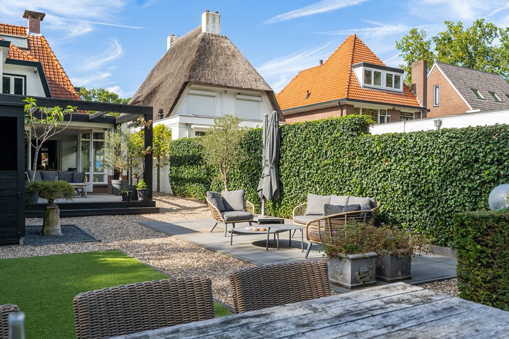 Снаружи сад, ориентированный на юго-восток, простирается почти на 45 метров в глубину, предлагая несколько террас, ухоженные зоны и веранду, оборудованную для жизни на свежем воздухе в любое время года. Оригинальные архитектурные детали, рельеф Ora et Labora, а также статус муниципального памятника с 2010 года подчеркивают уникальное положение дома. Локация обеспечивает быстрый доступ к культурной жизни Веенендала, а также к лесам и лугам Утрехтсе Хёйвелрюг.