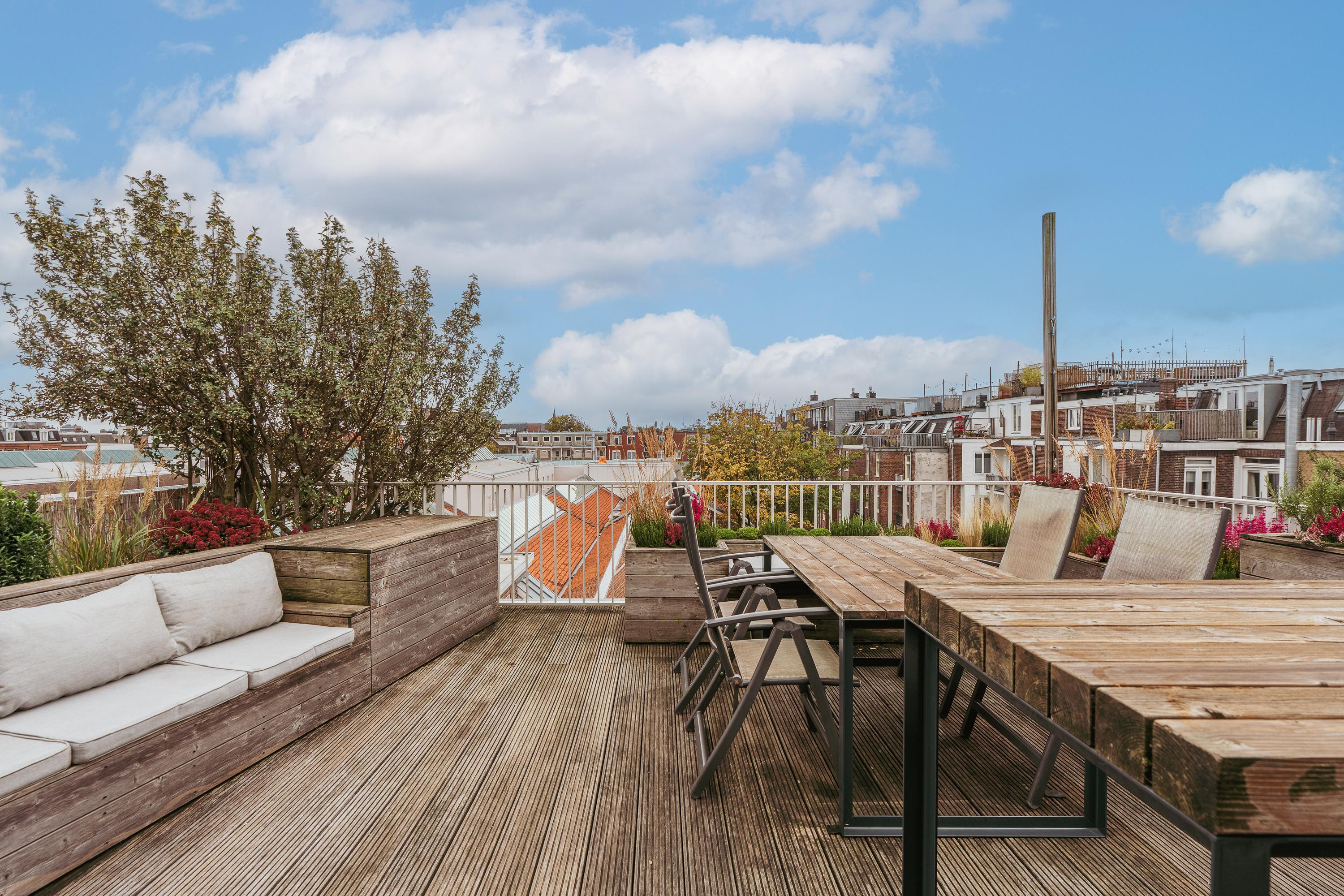 屋顶露台由主走廊直达,构筑城市上空的宽敞私人休憩空间,坐享南向阳光。公寓配备空调、机械与自然通风、局部地暖及焕新地基。住户享有健康、自主管理的业委会,以及城市罕有的安全、经许可的地下停车位特权。此待售公寓为阿姆斯特丹西城区罕见结合便利、传承与私密性的精品城市住宅。