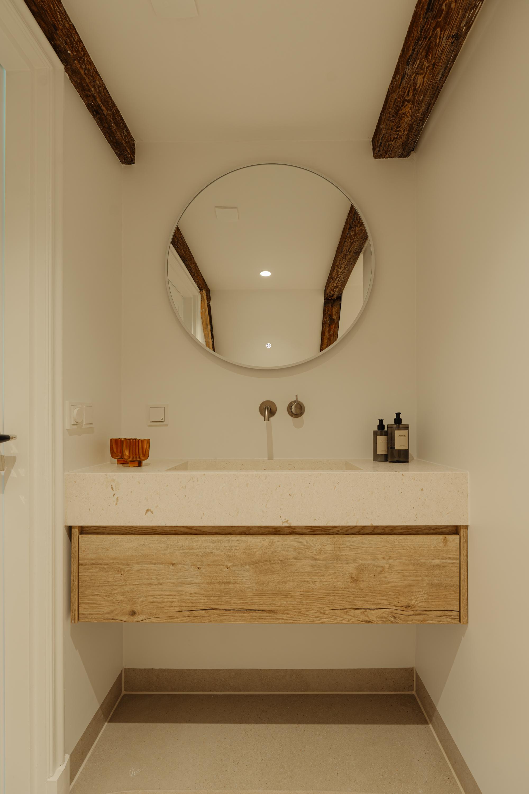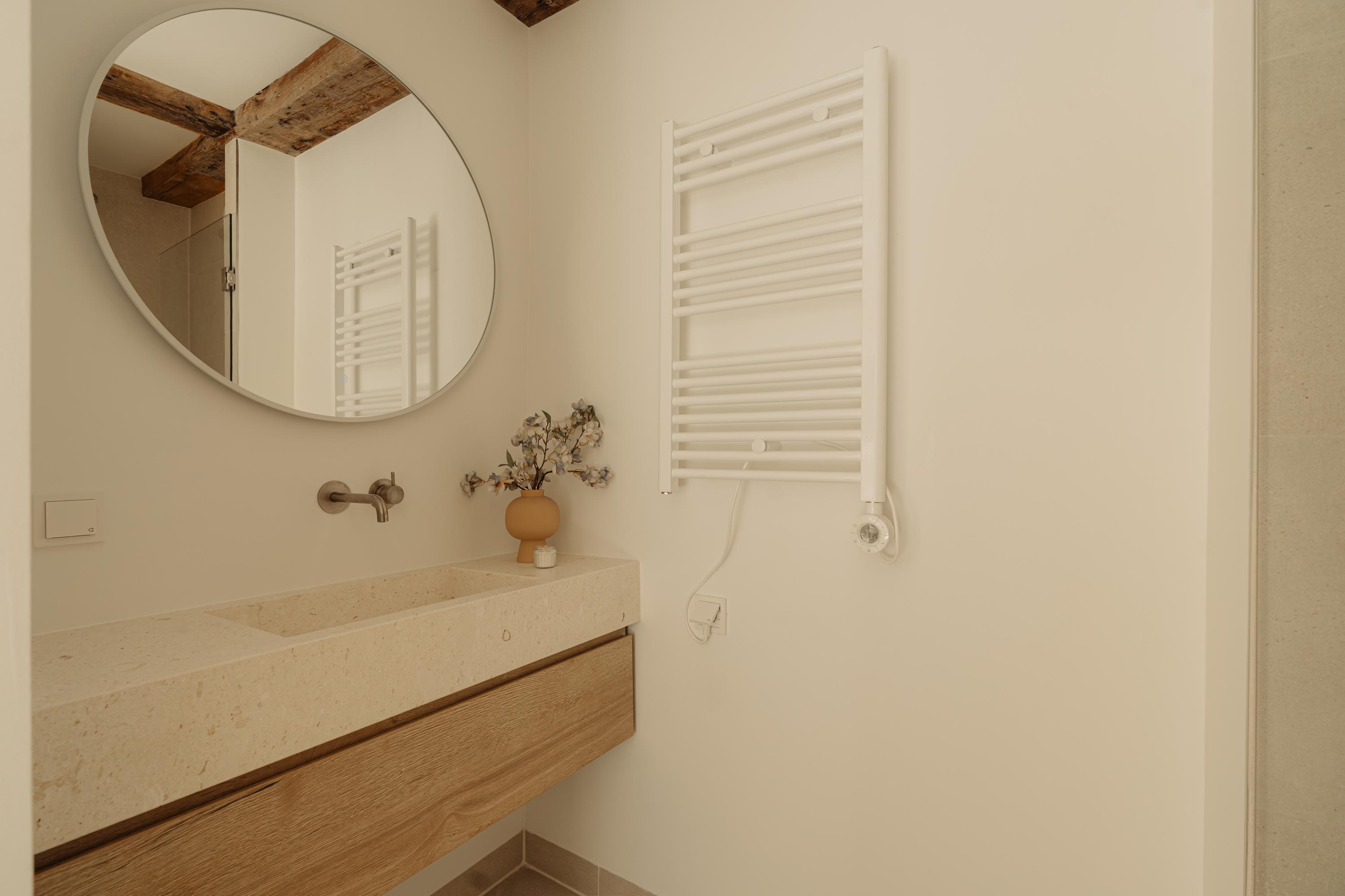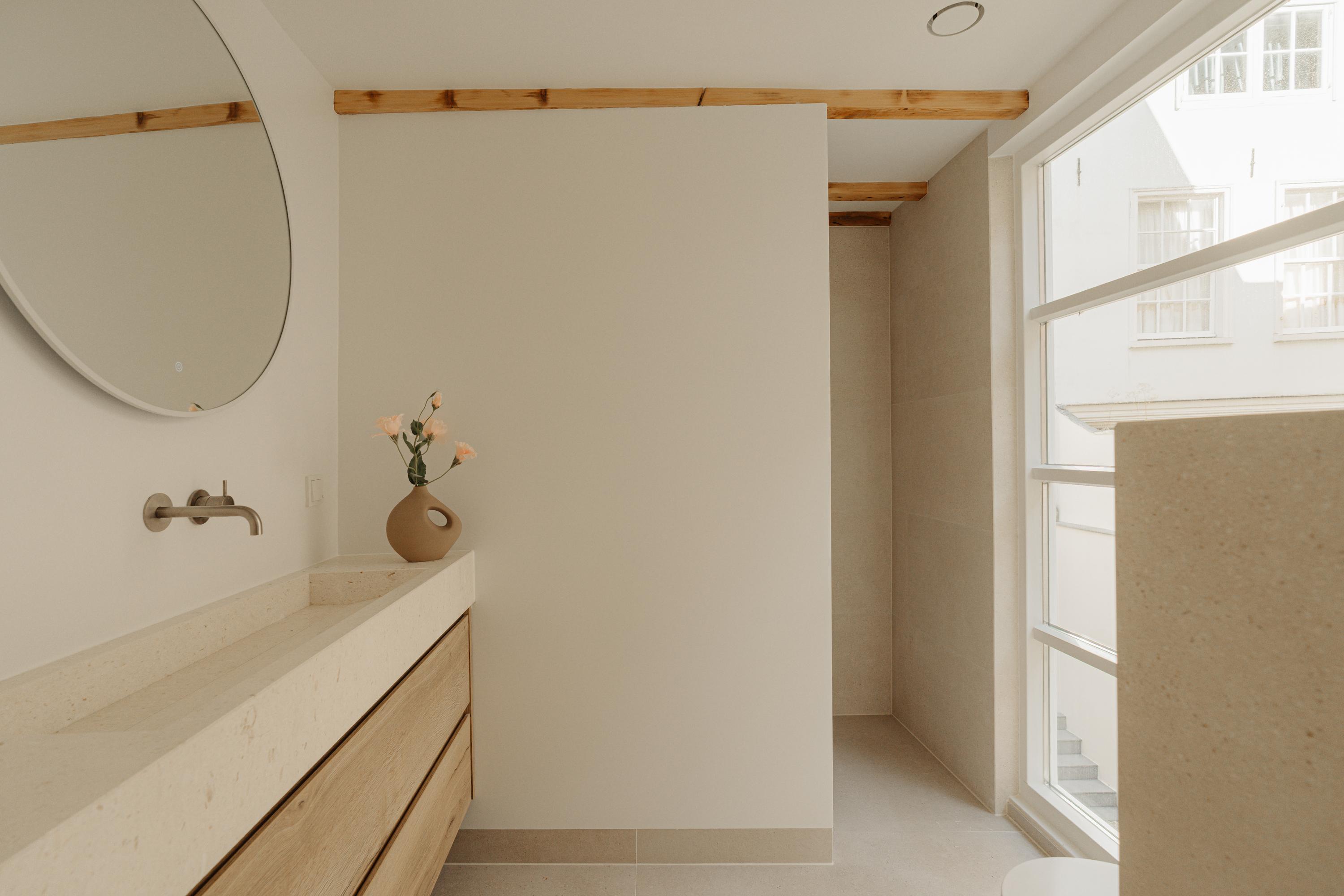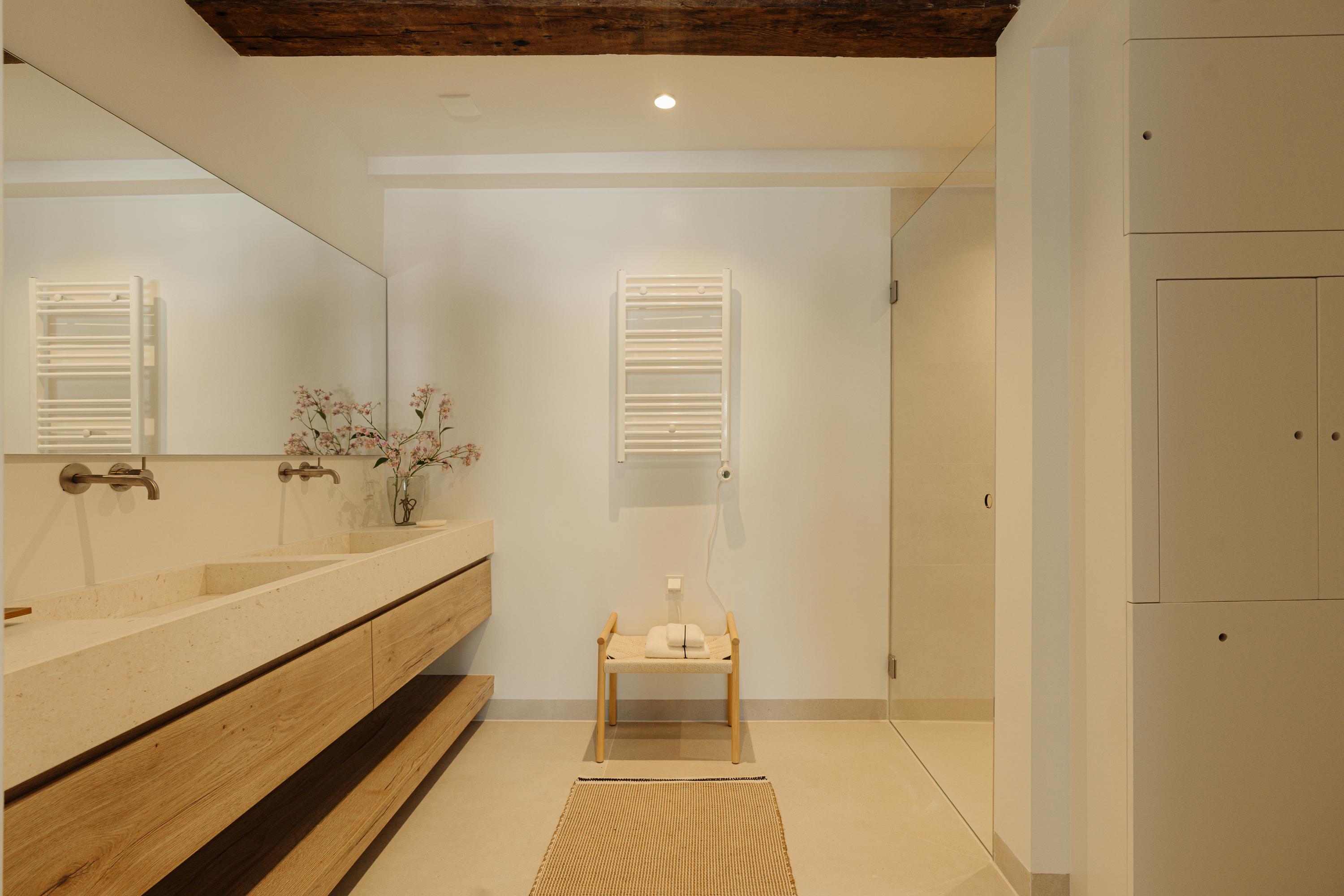 一层与二层为多间卧室,采用静谧材质并配备定制衣柜。主卧面朝运河,拥有法式阳台、独立浴缸及以天然石材与木饰精制的套间卫浴。其他卧室则面向内花园,适合宾客或多功能生活。顶层设有两间房,后部通往城市天际线一览无余的屋顶露台。
