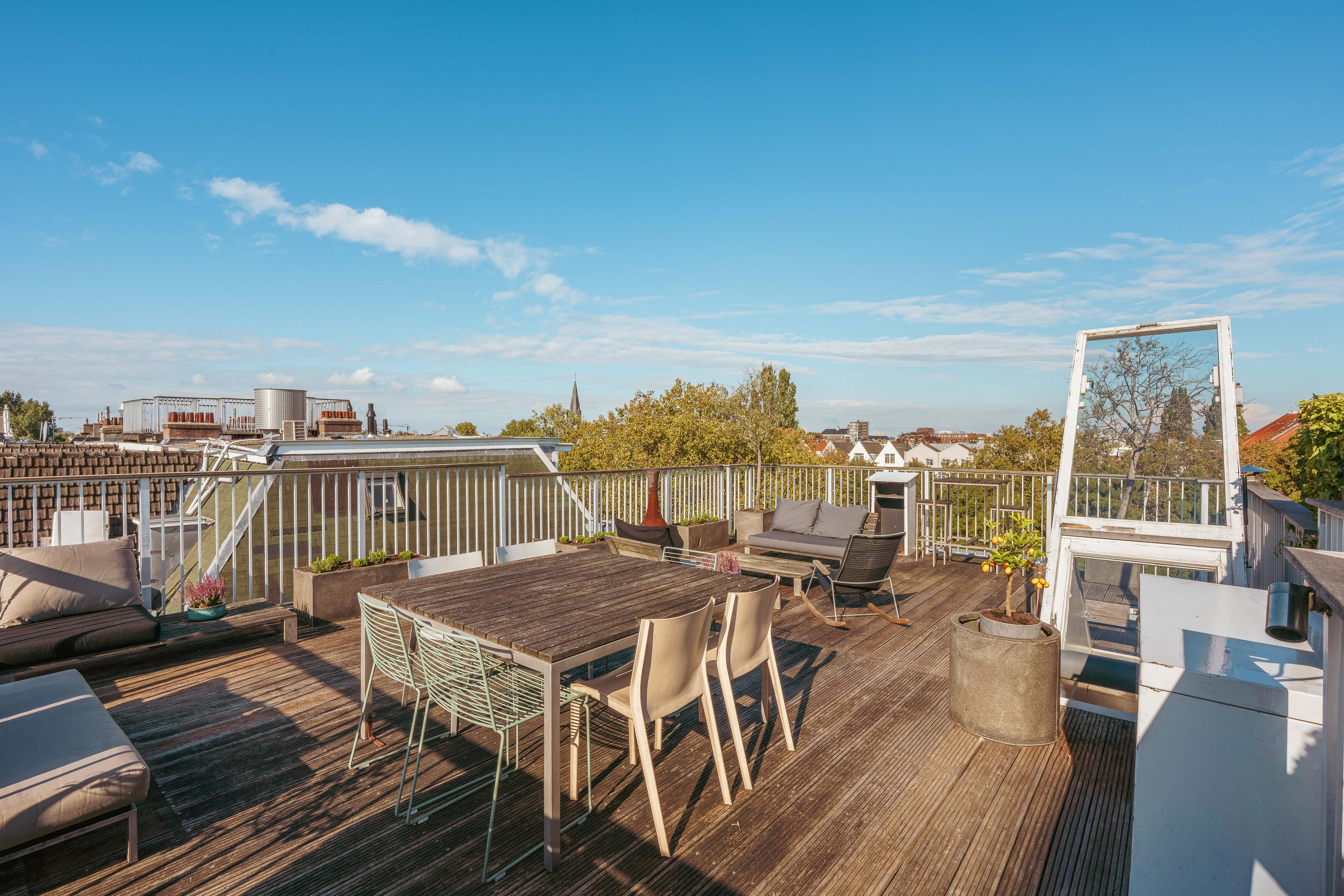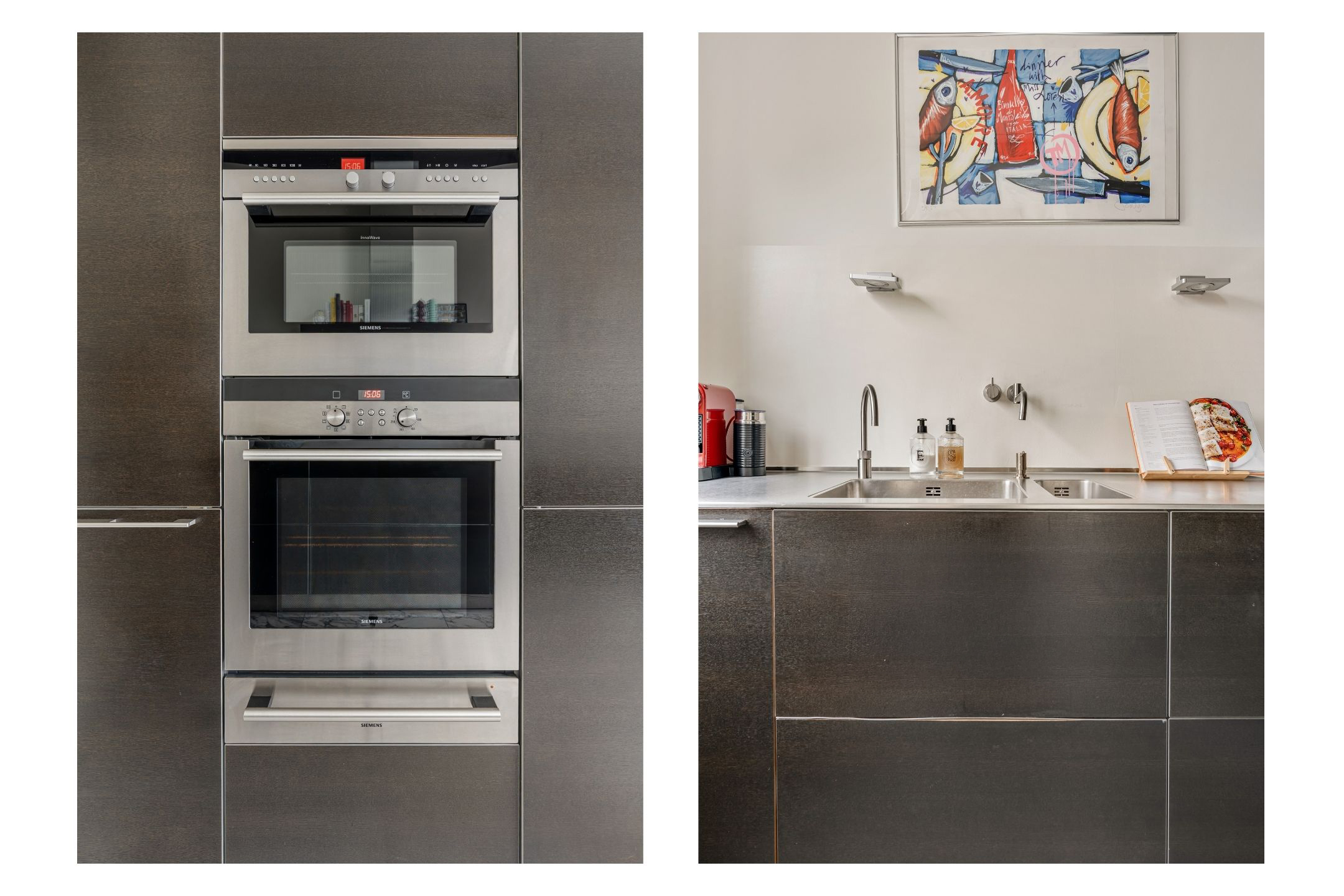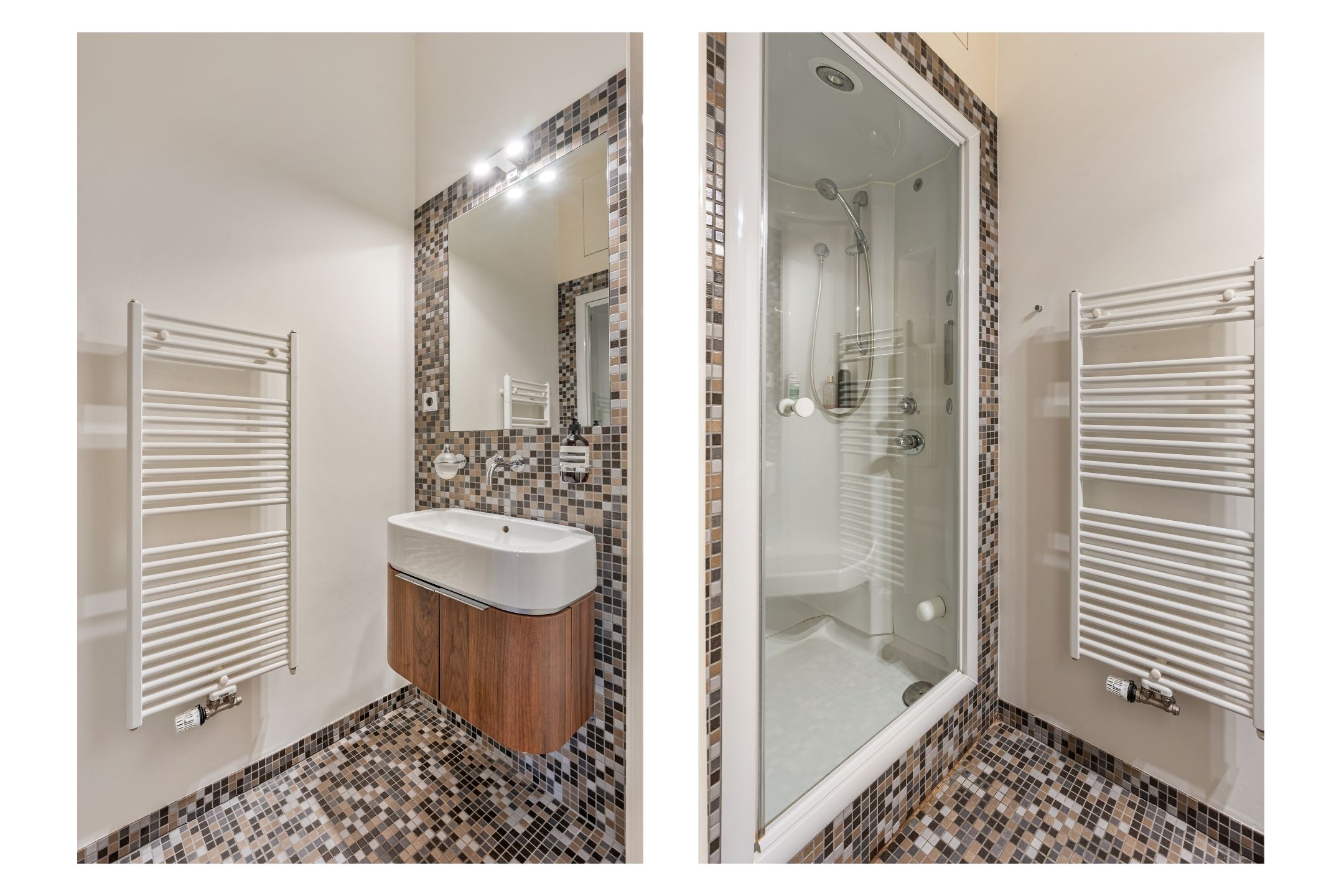 公寓布局流畅安然——套房式空间设计、原装木质推拉门与壁炉兼具温馨与建筑美感。主心空间为现代半开放式厨房,配备高端家电与大理石地面,直通用餐区与休闲区域。三间卧室布局灵动,主卧位于前侧,后方多功能空间相通朝南阳台及59平方米屋顶露台,是于城市之心享受私密户外与全景视野的理想场所。两间浴室,其中一间设有蒸汽房,进一步提升日常幸福感。