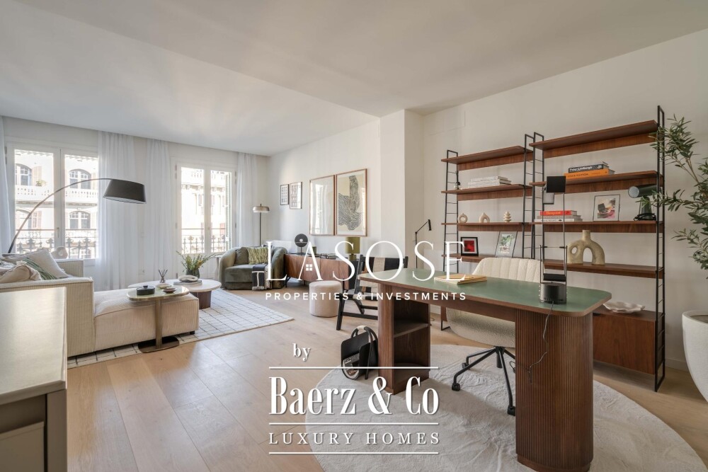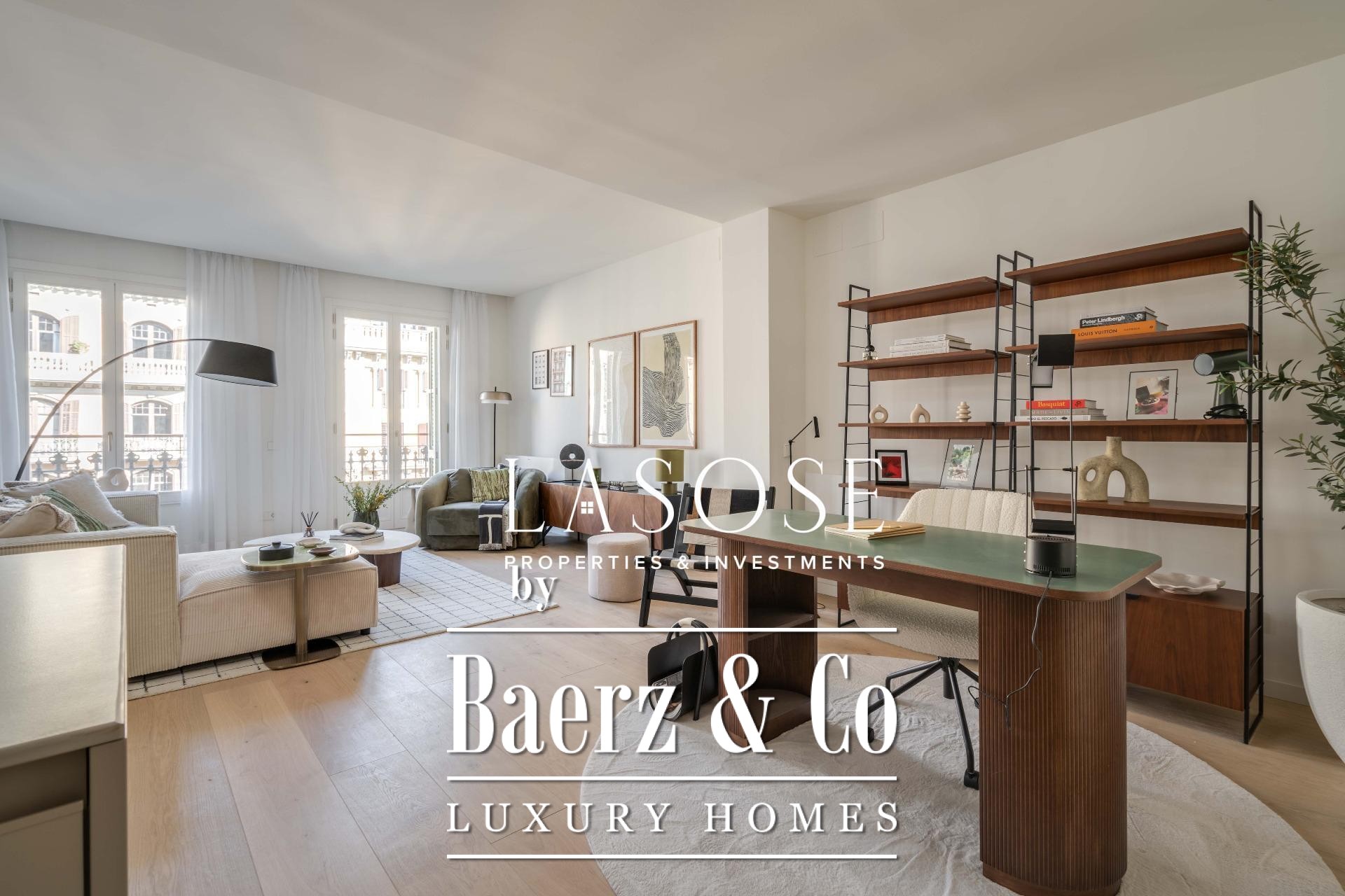 Apartment Barcelona Eixample 在巴塞罗那著名的埃桑普勒区中心,提供别具一格的高端住宅选择。这套96平方米的公寓拥有两间卧室和一间浴室,是19套独家住宅之一,巧妙融合了经典传承与现代生活方式。传统阳台与宽敞的顶层露台相得益彰,营造出充沛采光、都市节奏与私密性的和谐氛围。