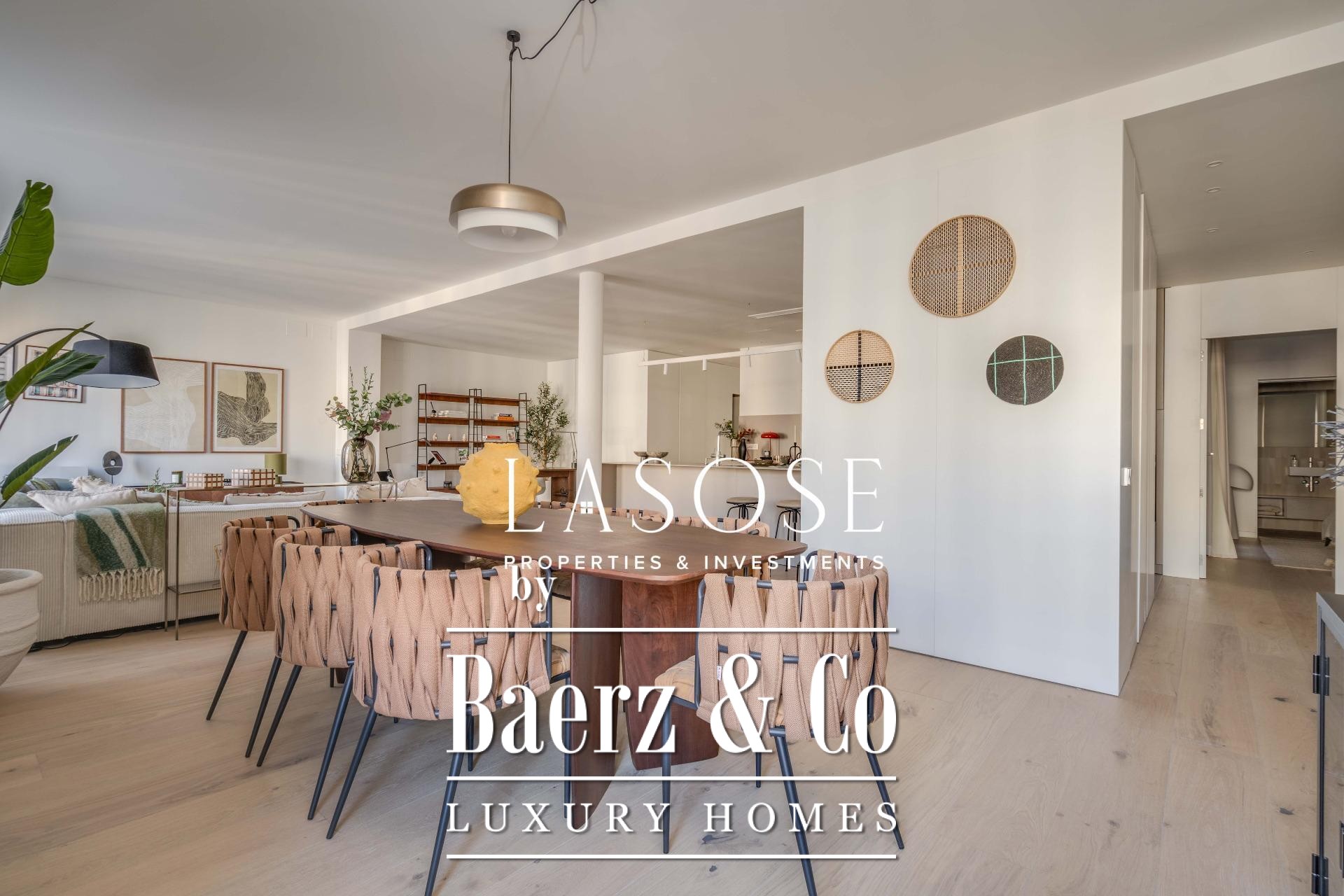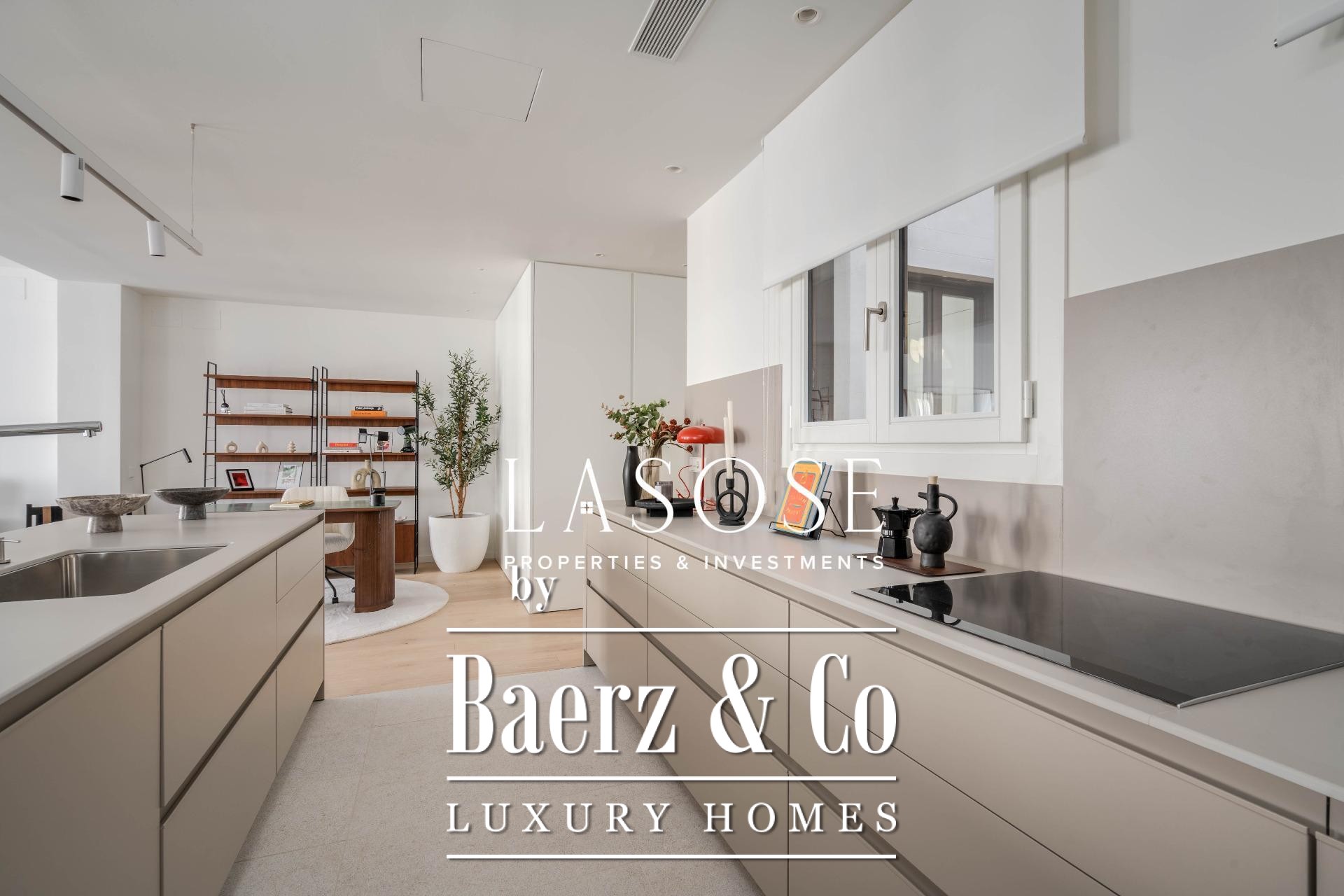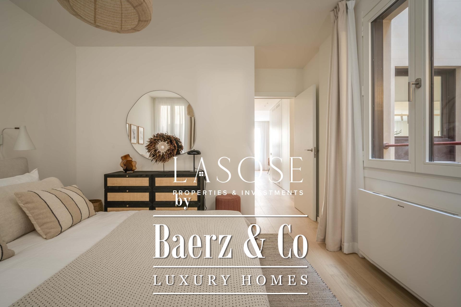 Estudio Vilablanch 打造的内饰细节彰显低调雅致,将现代家电与前沿科技融入标志性设计。室内空间布局合理,功能完善,配备嵌入式衣柜、全套家电和专用洗衣房,并辅以暖气、可视对讲及电梯等设施。
