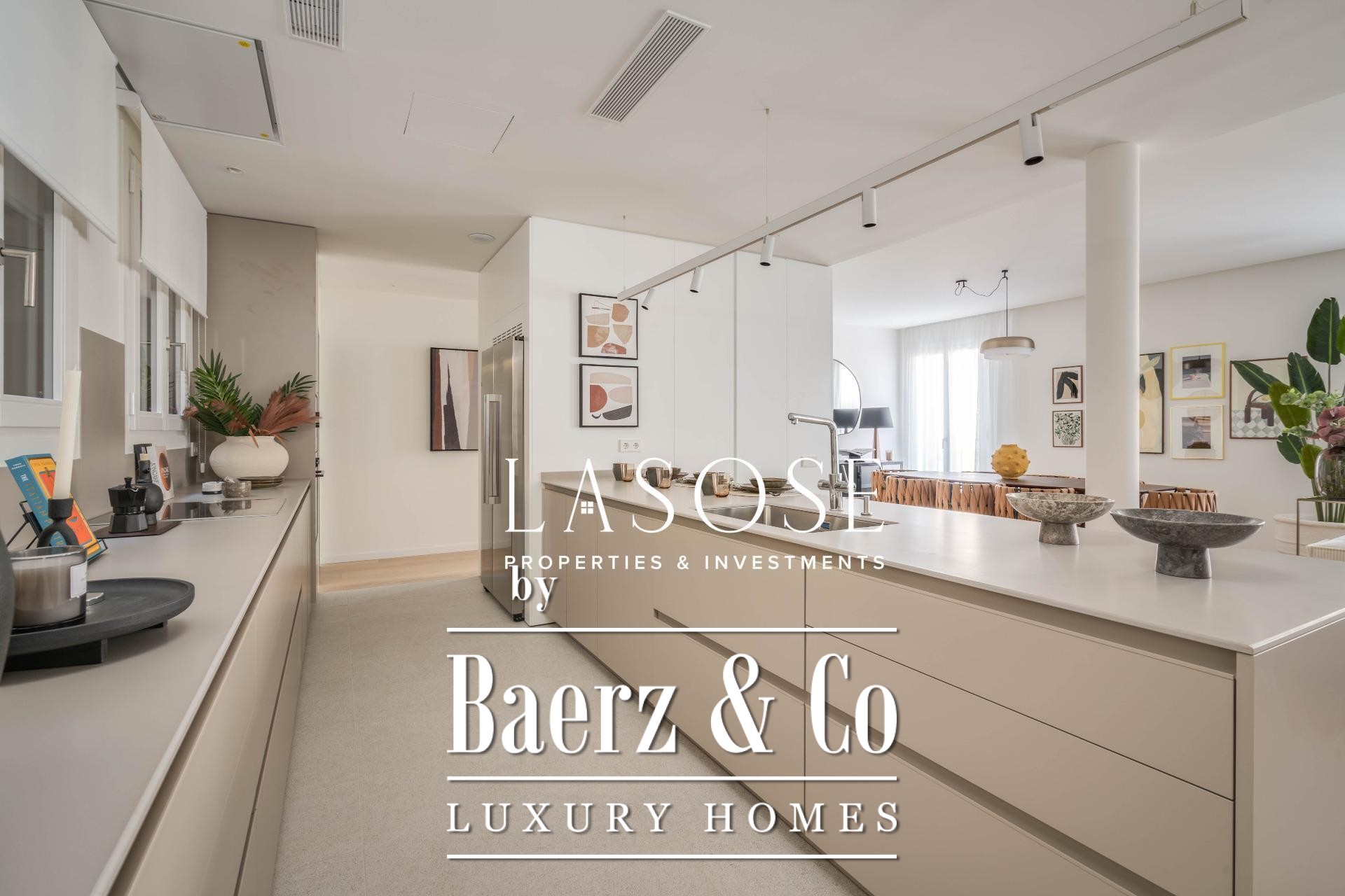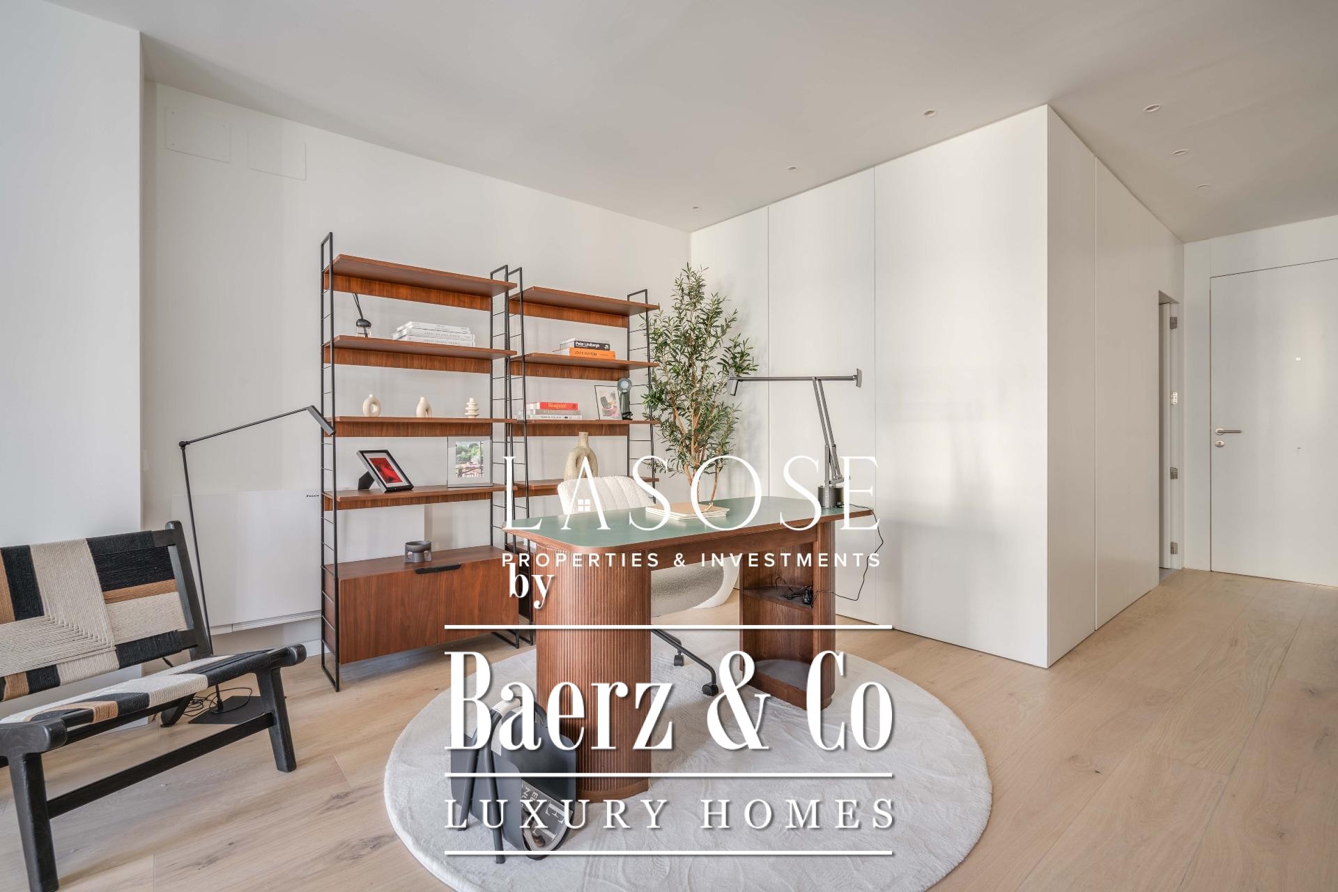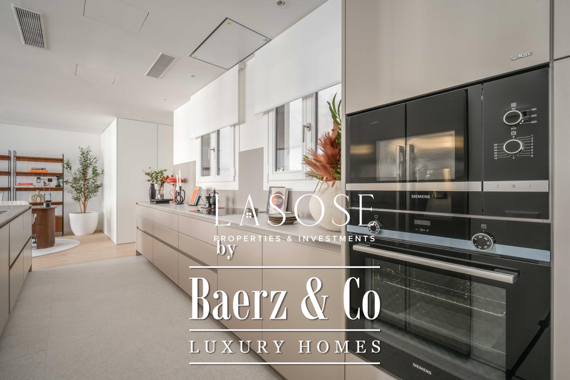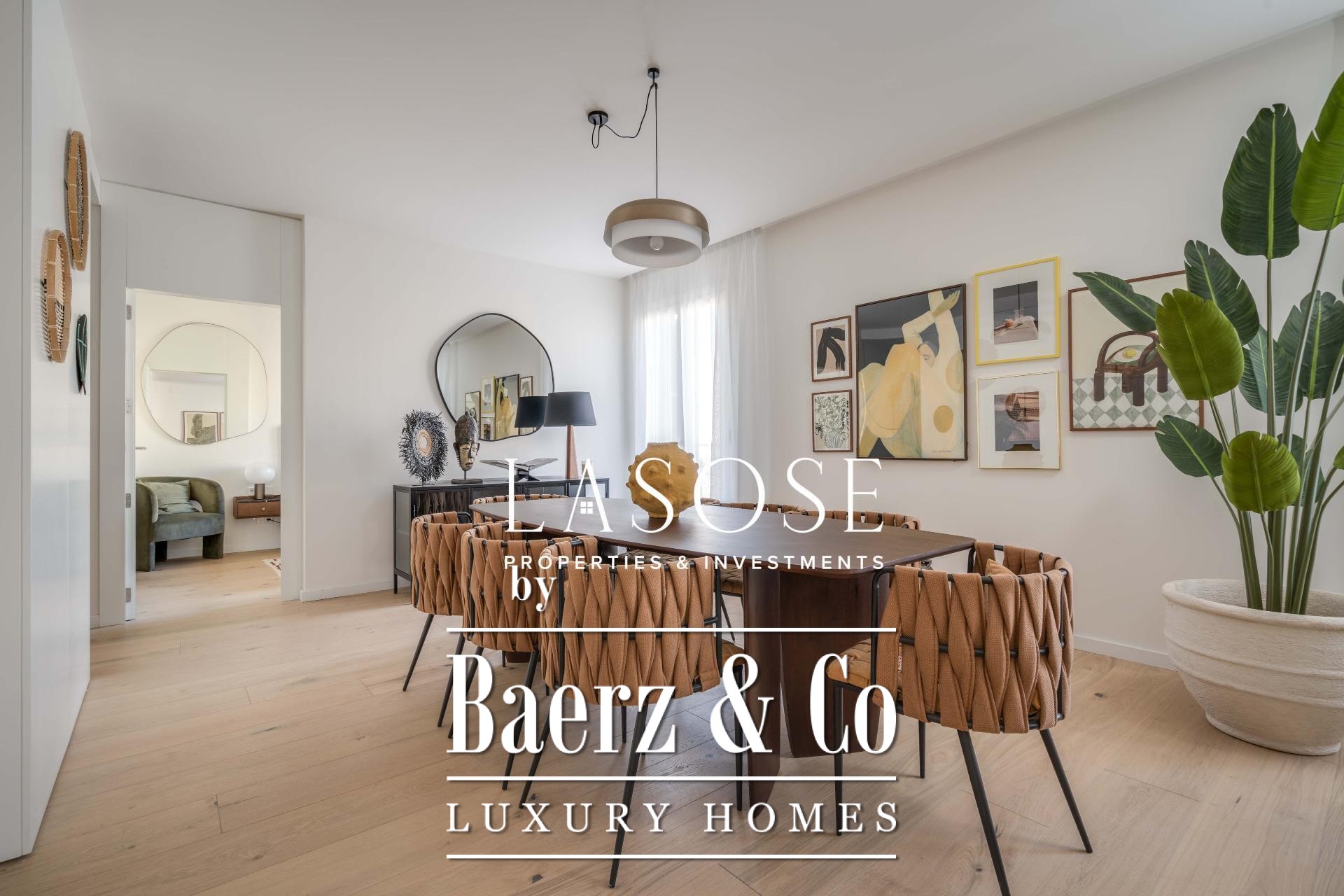 Estudio Vilablanch 打造的内饰细节彰显低调雅致,将现代家电与前沿科技融入标志性设计。室内空间布局合理,功能完善,配备嵌入式衣柜、全套家电和专用洗衣房,并辅以暖气、可视对讲及电梯等设施。