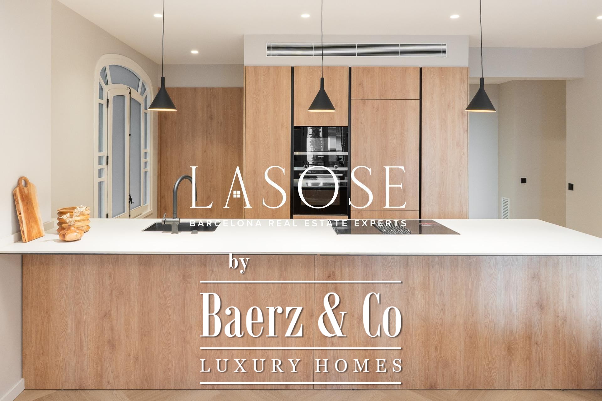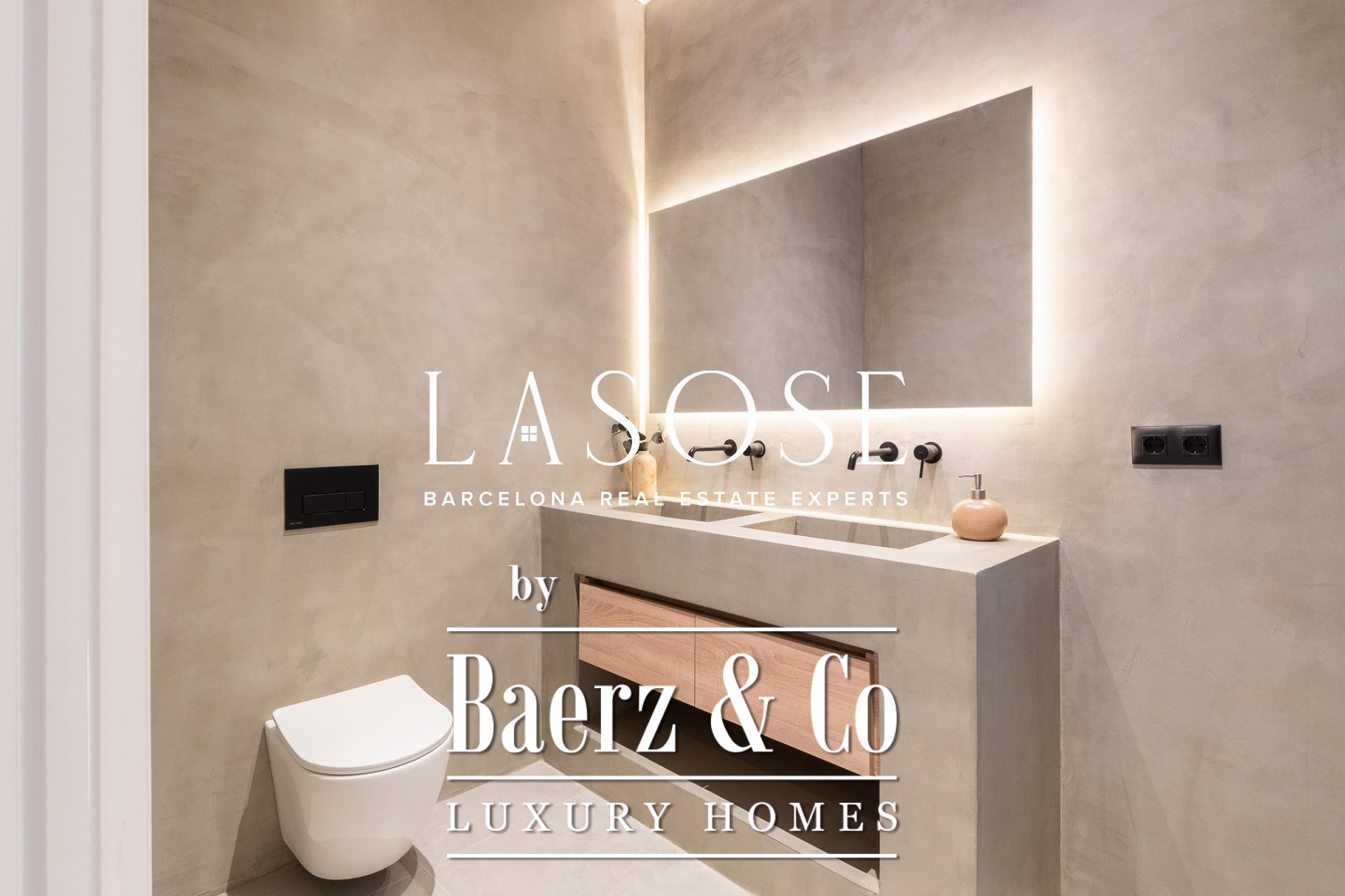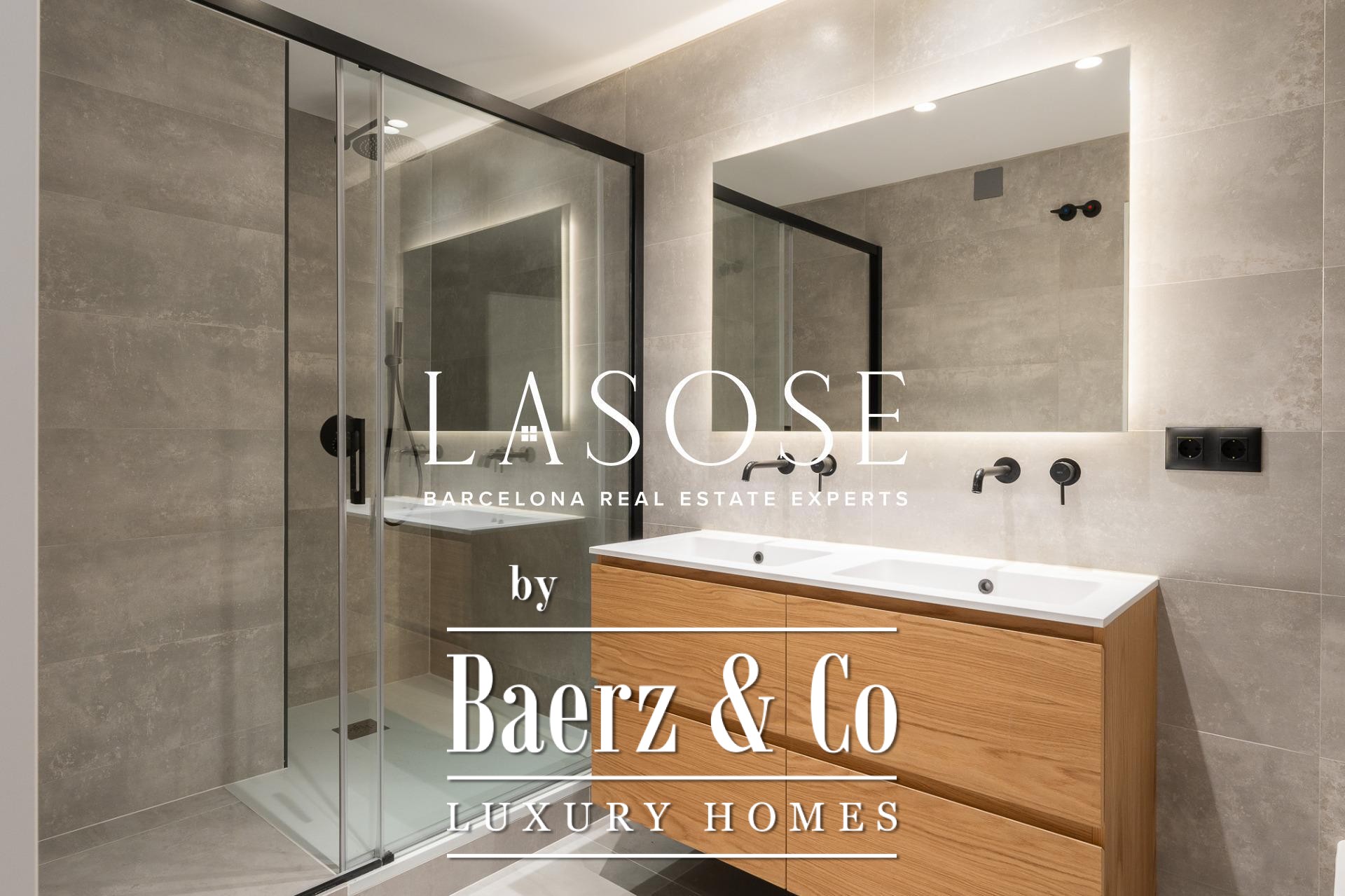 三间卧室包括一间主卧套房,配有独立浴室和更衣室,辅以内置衣柜与定制木工。居家舒适由空气源热泵空调和双层玻璃木窗保障。住户可享电梯、礼宾服务、可视对讲系统及安全防护门等便利设施。这处巴塞罗那奢华公寓在售,非常适合注重私密与设计品味的买家。