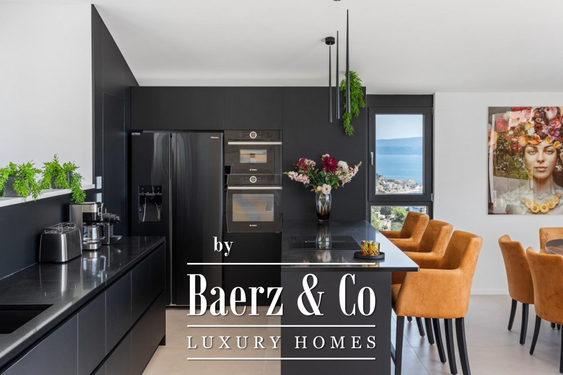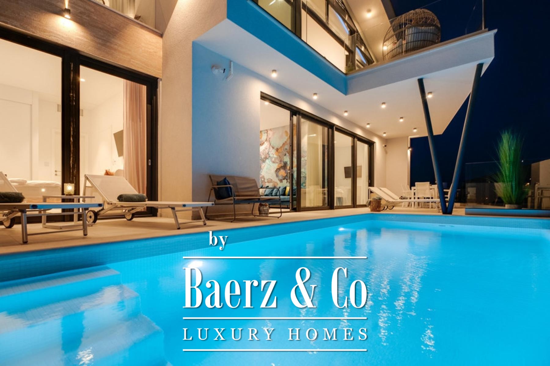 Jesenice, modern semi-detached villa with swimming pool. Spread over three floors, net usable area 245 m2. Consists of a living room, open-concept kitchen and dining room, 3 bedrooms, 2 bathrooms and one toilet, as well as a beautiful terrace with a swimming pool and a sunbathing area.Thanks to the stunning architecture, the upper floor has impressive ceiling heights combined with a beautiful sea view from the living room.It has 2 parking spaces.The villa was built to the highest technical standards, including smart home technology, underfloor heating, air conditioning and electrically operated roller shutters.Completed in 2023, it is fully furnished and equipped and is being sold as such.The advertised price refers to the purchase of the villa with the company that owns it.Further information on request.