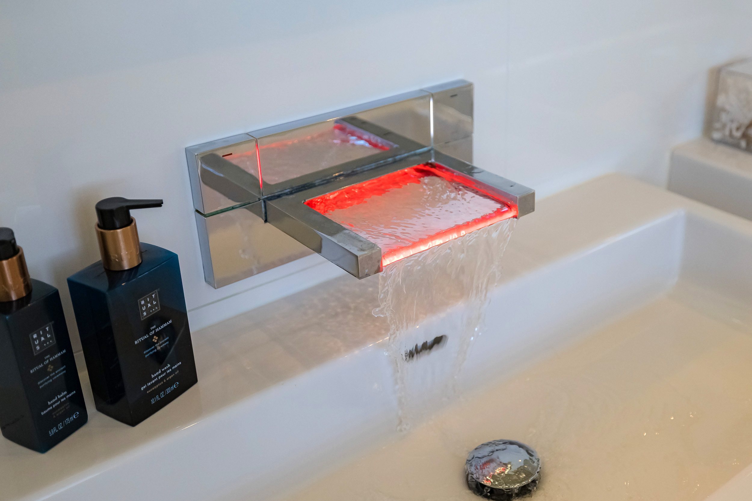 明亮宽敞的起居室以燃气壁炉为中心,和谐推拉门将空间延展至25平方米的屋顶露台和直接悬于水面的平台。厨房兼具实用性与雅致风范,设有中央水槽岛台及全套嵌入式家电。三间卧室和两间现代浴室兼顾隐私与待客空间,全屋地暖设计带来舒适体验。
