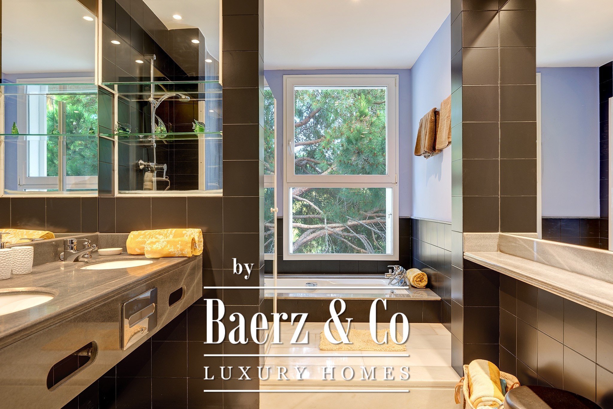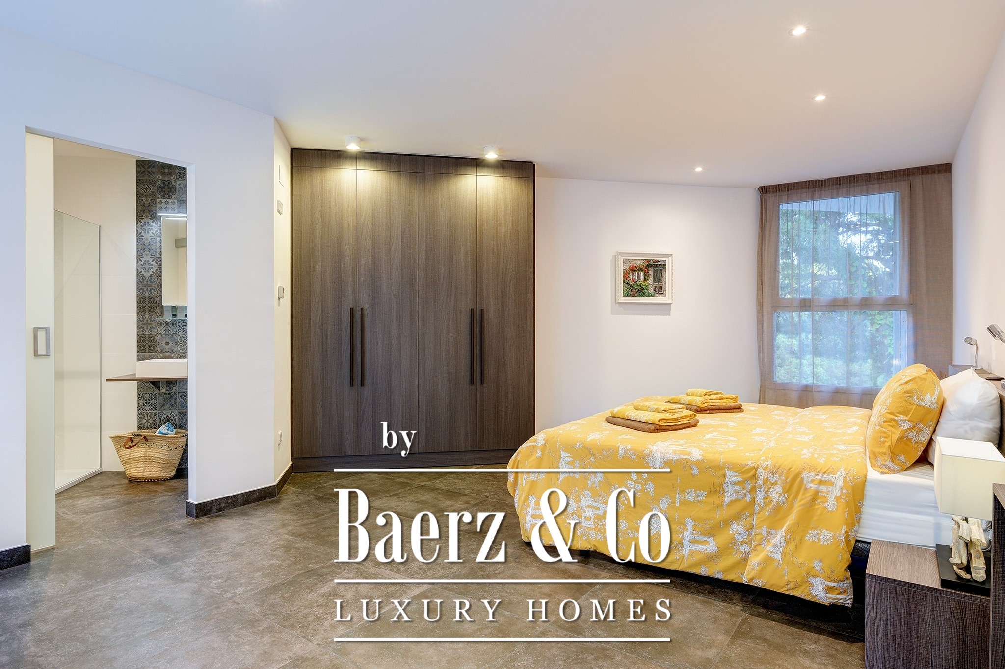 别墅的每一处建筑细节皆彰显通透与精致:从铝合金门窗、地暖系统到定制户外照明;四间套房为居者提供私密静谧的休憩空间,搭配全套设计师厨房、酒窖及多功能空间,以适应不同生活场景。书房、客用卫生间与隐秘车库满足日常以及家庭聚会之需,中央空调、管道背景音乐和先进报警系统确保居住无忧。