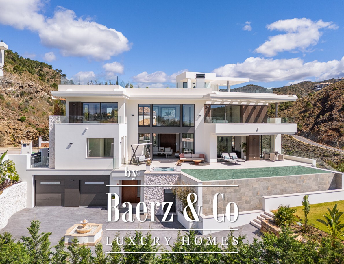 Marbella别墅坐拥海景与山景,坐落于宁静的Lomas de la Quinta高级门禁社区,以私密与平和氛围著称,尽显精致生活格调。这座建筑面积764平方米的六卧室别墅坐落于1,377平方米的地块上,现代建筑风格融合天然材质,自然采光与宽阔空间相得益彰。317平方米的露台以及两处起居区均可欣赏地中海海岸及Sierra de las Nieves山脉美景,宽大落地窗将壮丽景致尽收眼底。