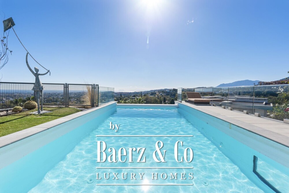 别墅位置优越,坐北朝南西,俯瞰大海、群山与海岸线,日常生活因之更为惬意。恒温私家无边泳池(水深2.7米)成为户外空间的核心,同时设有静谧的休憩露台和花园区域。该封闭式社区为住户保障安全与隐私,配备24小时安保,营造出安宁环境,而距离Marbella都市文化、著名高尔夫球场与海岸线又极为便利。