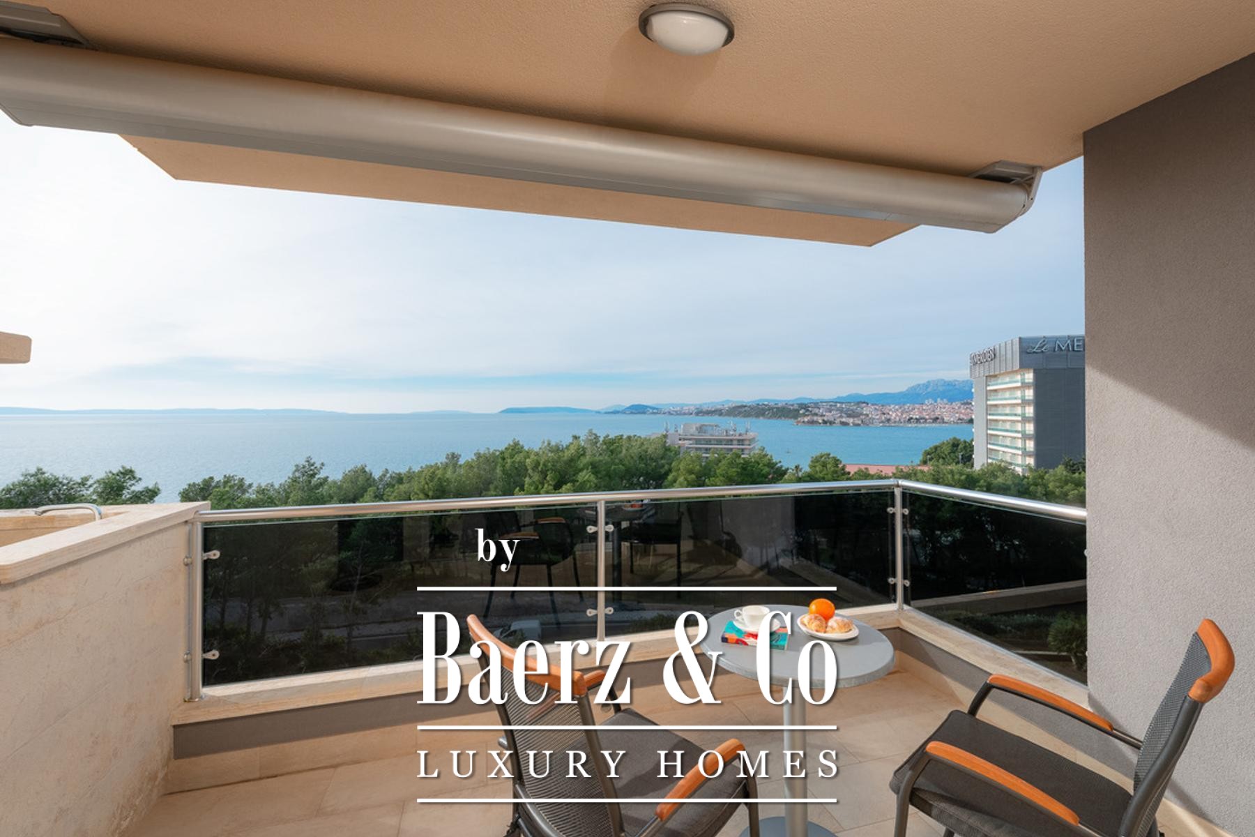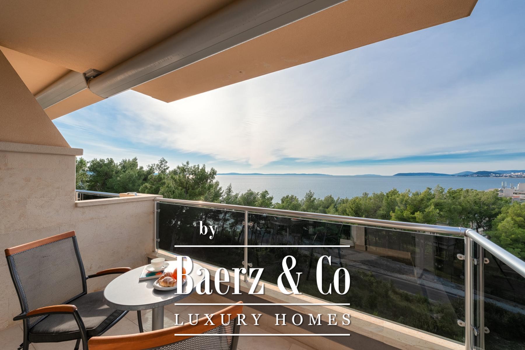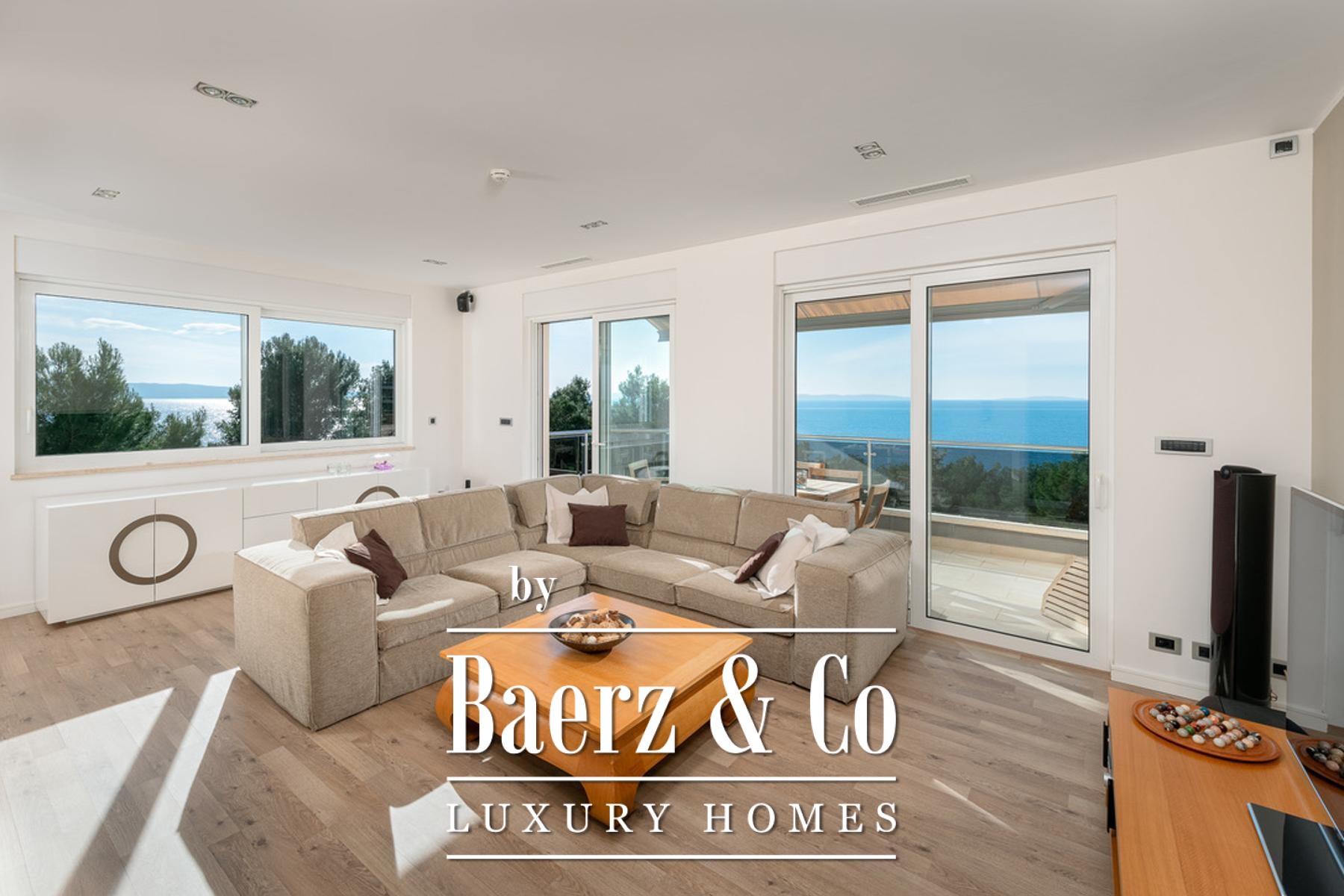 三处露台总面积达18.38平方米,尽享亚得里亚海全景视野,景致稳定长存。客厅区域光线充足,得益于大幅玻璃幕墙与精准朝向。专用工作间配备洗衣设施,独立衣帽间便于高效收纳。全宅智能系统覆盖地暖、空调、新风系统、烟雾与报警探测器、中央吸尘、中水用太阳能热水、高端电动百叶与遮阳篷以及高品质家电。露台上的传统砖砌壁炉,让住户连接达尔马提亚的户外自然。