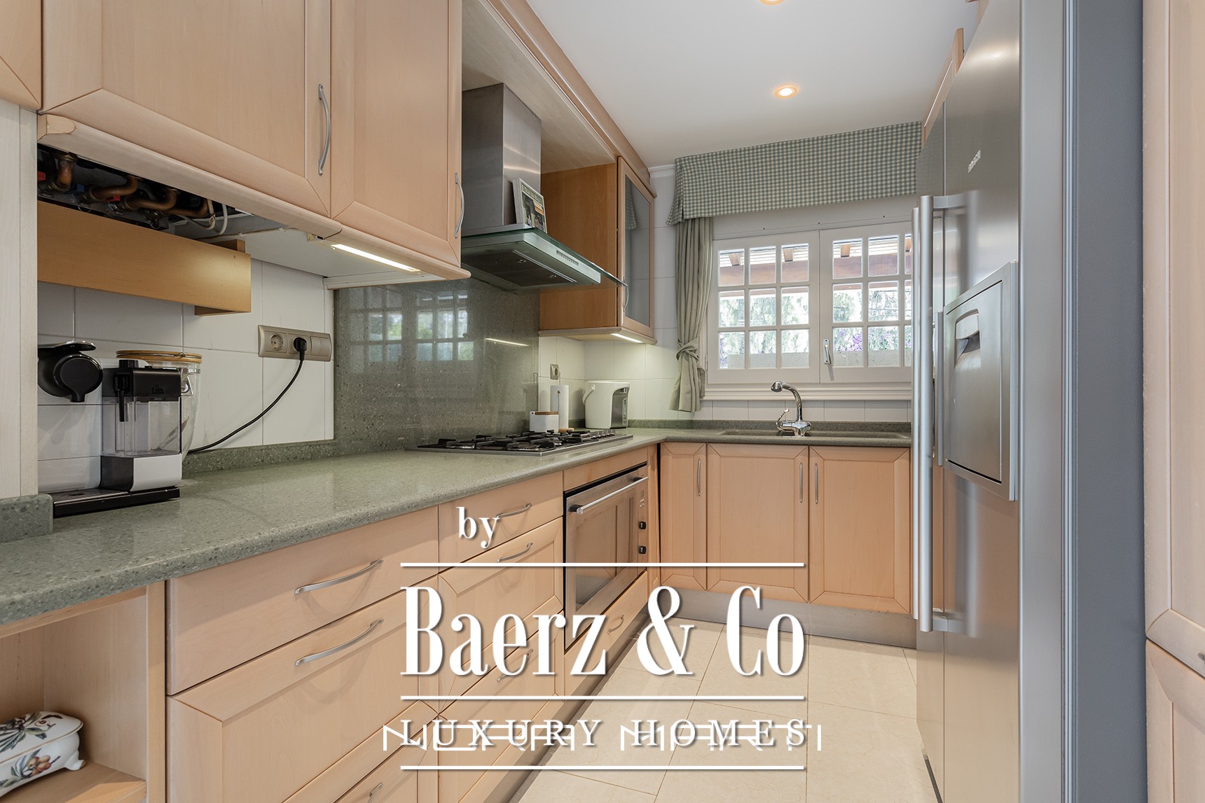 全屋共346平方米,分布于四层。主楼层设有起居和餐饮空间,顺畅通向40平方米的有顶门廊、带烧烤区的花园及诱人的泳池。独立厨房设施齐全,配有一间单人卧室和一间带淋浴的浴室,空间布局自然流畅。