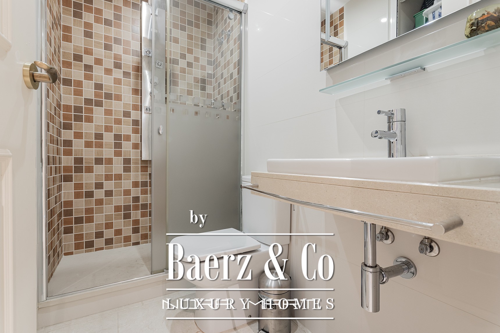 步入三楼,设壁炉的双人房与20平方米私人露台相连,可俯瞰开阔海景。地下层提供可容纳三辆车的停车空间及独立洗衣房。自动百叶窗、双层中空玻璃窗、报警系统、分体空调和暖气片等细节体现了住宅的舒适与实用。