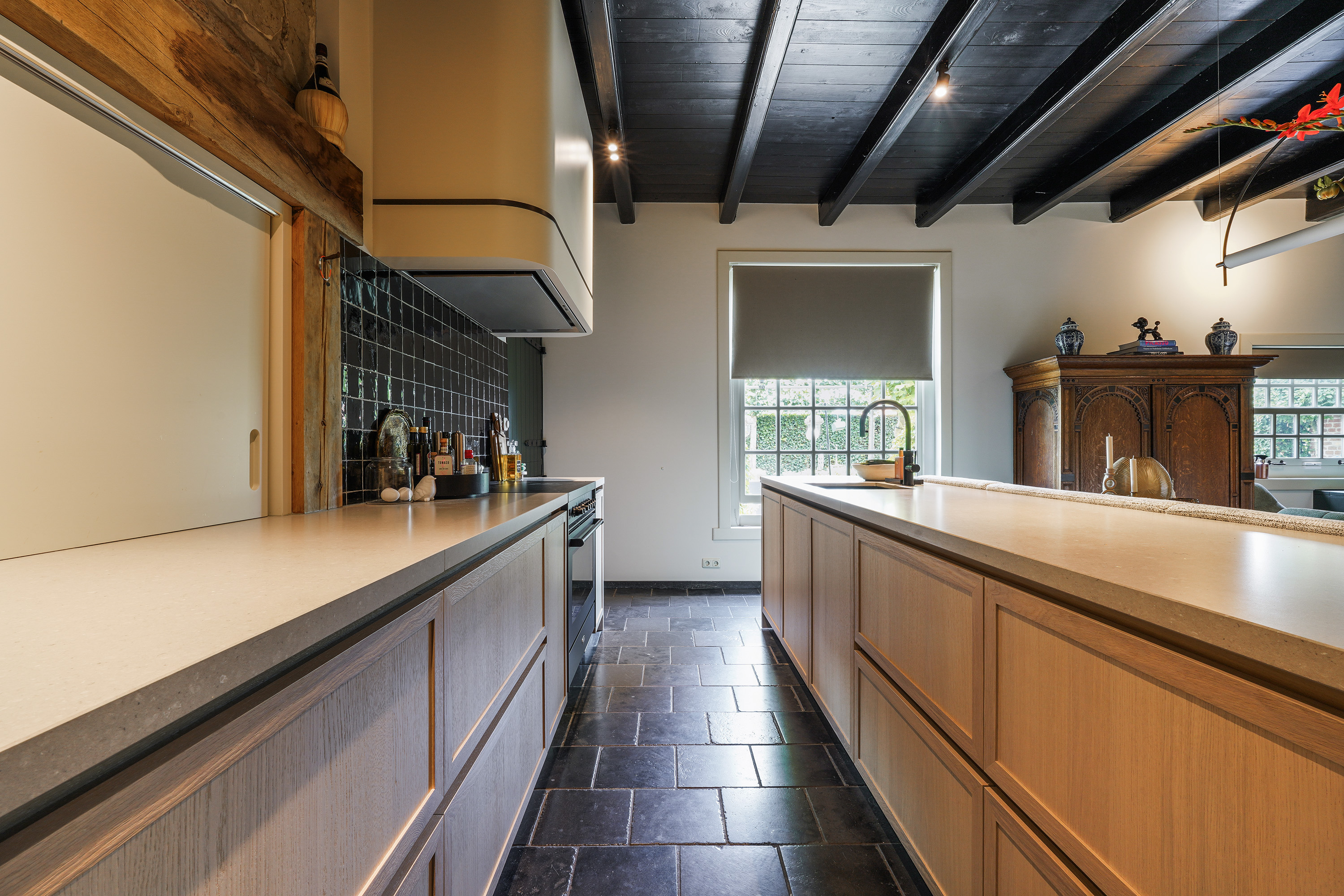 Sprang-Capelle传世宅邸融合了历史底蕴与悉心修缮,在658平方米的土地上,稀有地提供420平方米的奢阔生活空间。作为国家级历史保护建筑,该物业拥有非凡的渊源,其17世纪的起源体现在裸露的木梁、拱形天花板以及格调尊贵的迎宾氛围中。近90平方米的主起居室凭借颗粒炉与高大窗户贯通自然光,白色粉刷墙面和木地板柔化了空间线条。2024年定制的核心厨房出自Ecker Interieurbouw之手,橱柜量身打造,空间充裕,适宜用餐、聚会或静静欣赏花园景致。
