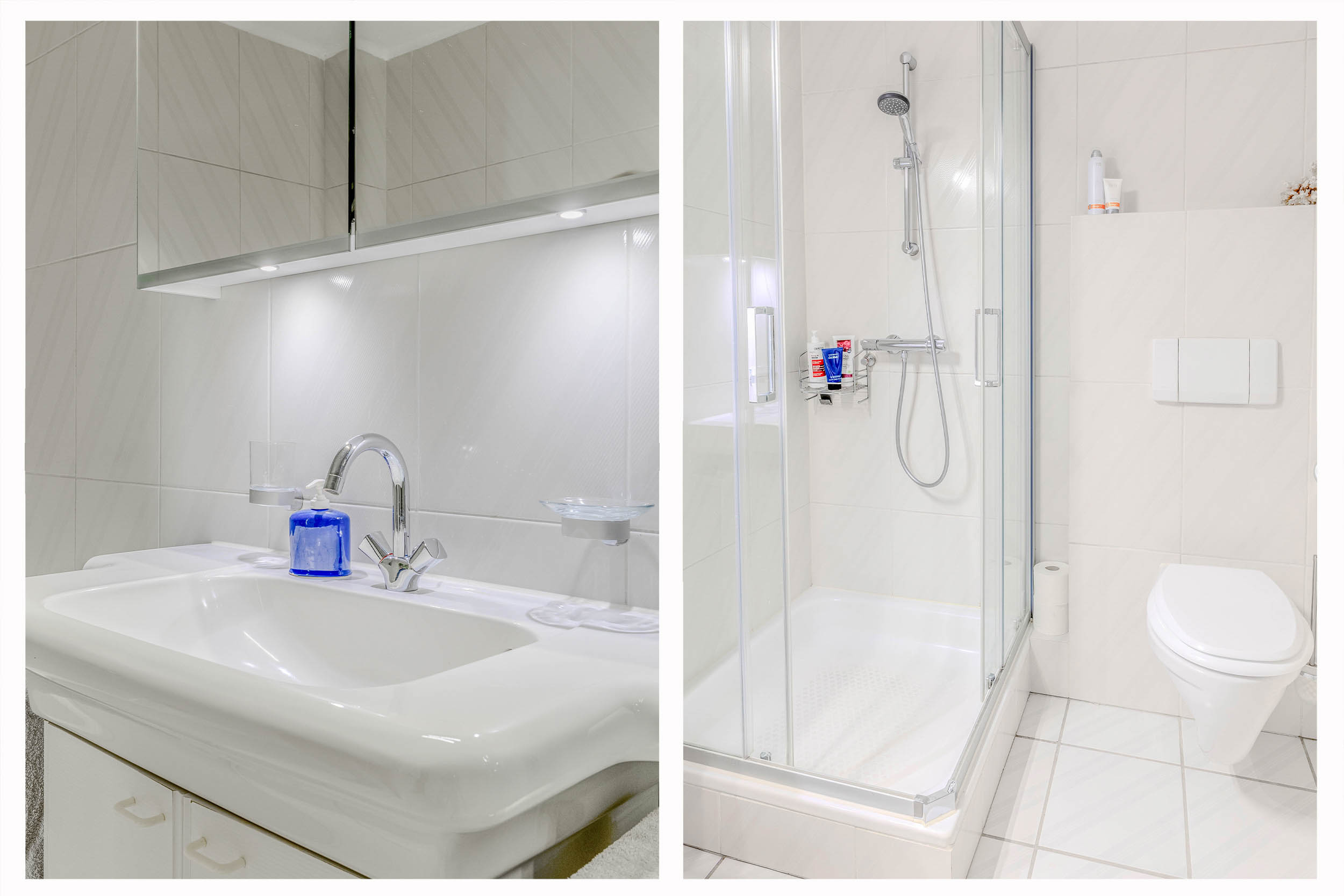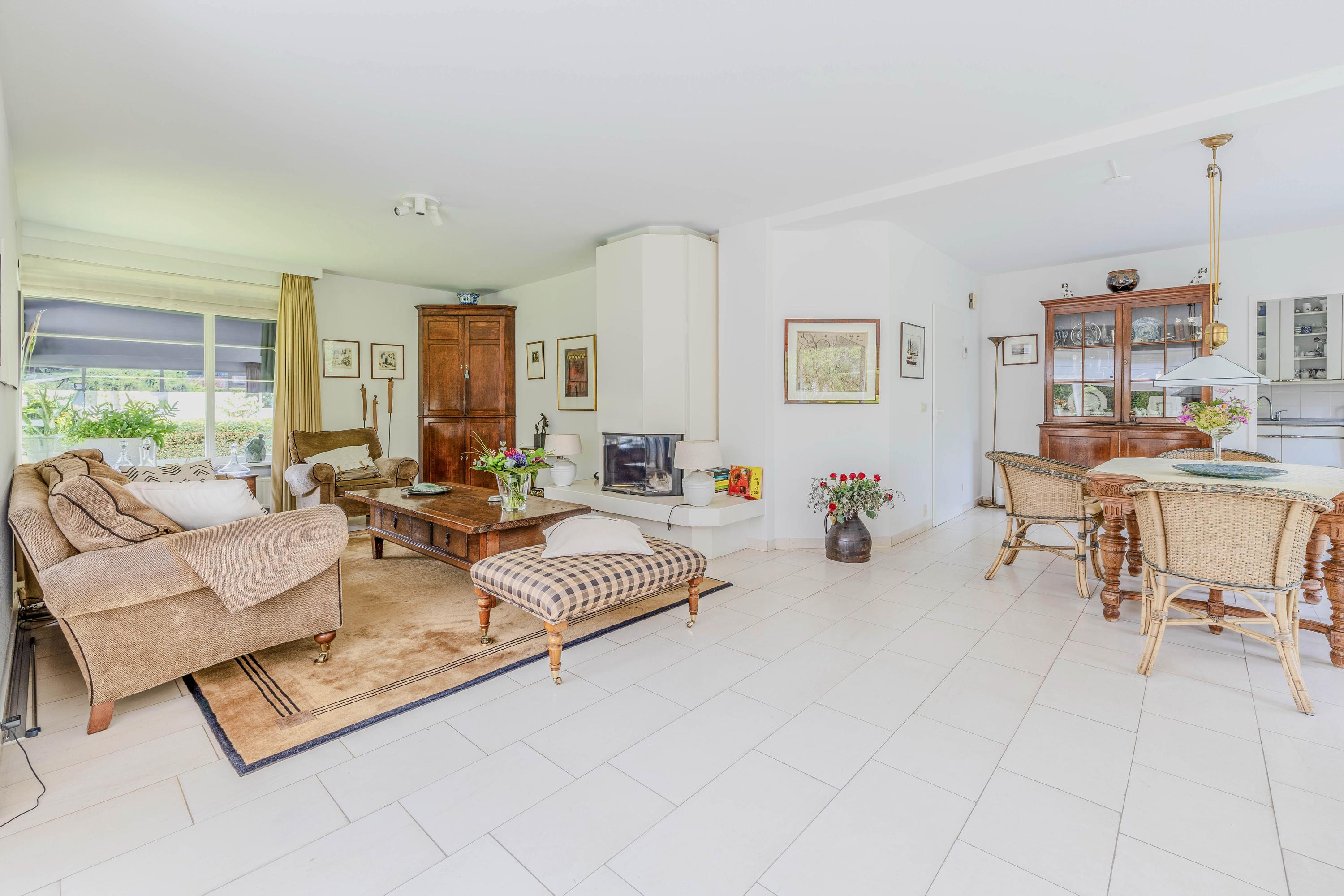 主生活区面积达62 m²,通过一扇凸窗采光充盈,设有壁炉、天窗与推拉门,直接通向景观私家花园(占地754 m²)。毗邻的厨房与功能区兼具实用与精致,自动遮阳设施让居室氛围更宜人。几乎整个首层均设地暖与地面制冷。该层的主人套房(16 m²)配备独立卫浴,确保私密与便利。