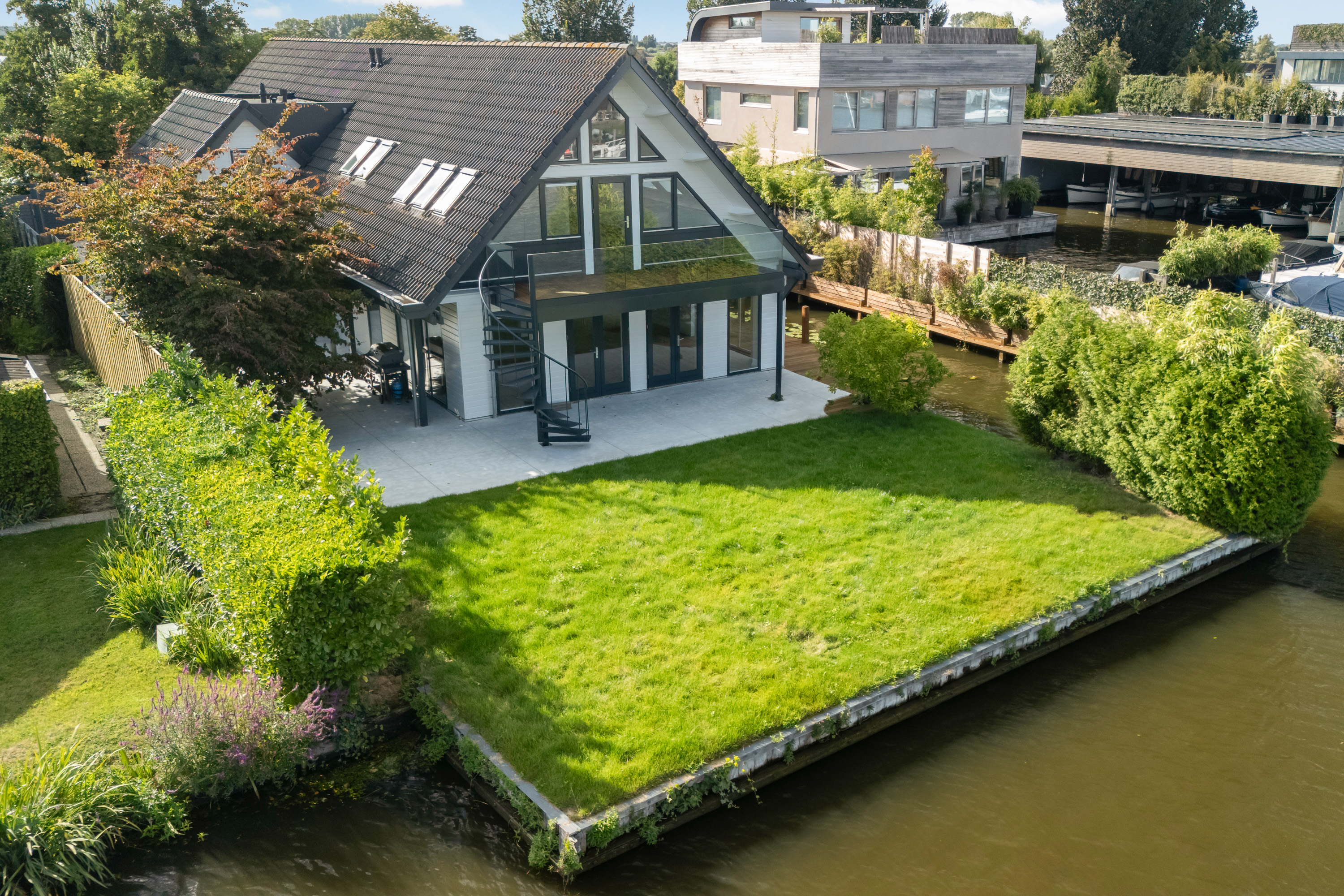 Woubrugge别墅诠释了静谧水岸生活的精致私密,坐落于荷兰绿心地区Woudwetering宁静岸畔。这栋独立别墅,拥有438平方米的室内空间及1,009平方米水岸地块,为崇尚隐私、舒适与自然联结的居者量身定制。七间卧室与四间浴室兼顾私密与社交需求,主人套房配有步入式衣帽间、独立卫浴及享有无遮挡水景的私人阳台。