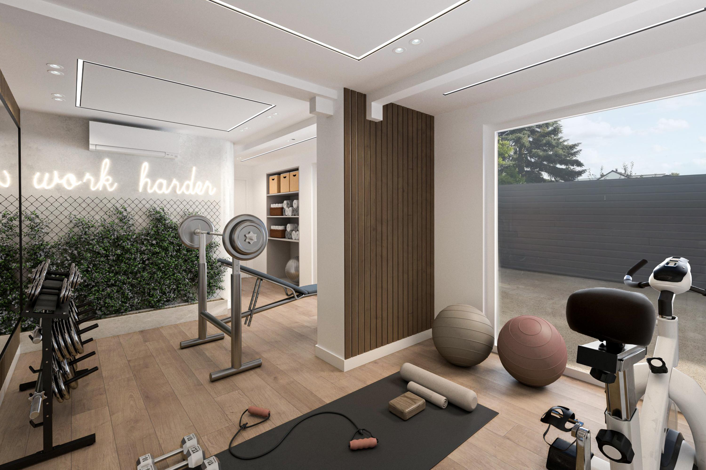 宽大的客厅窗户引入自然采光,营造出内外无界的居住氛围。高规格厨师厨房为精致宴请提供理想空间,毗邻多功能区,包含已预布线的家庭影院、书房与健身及休憩的健康空间,全部配备现代KNX智能家居系统与空调。